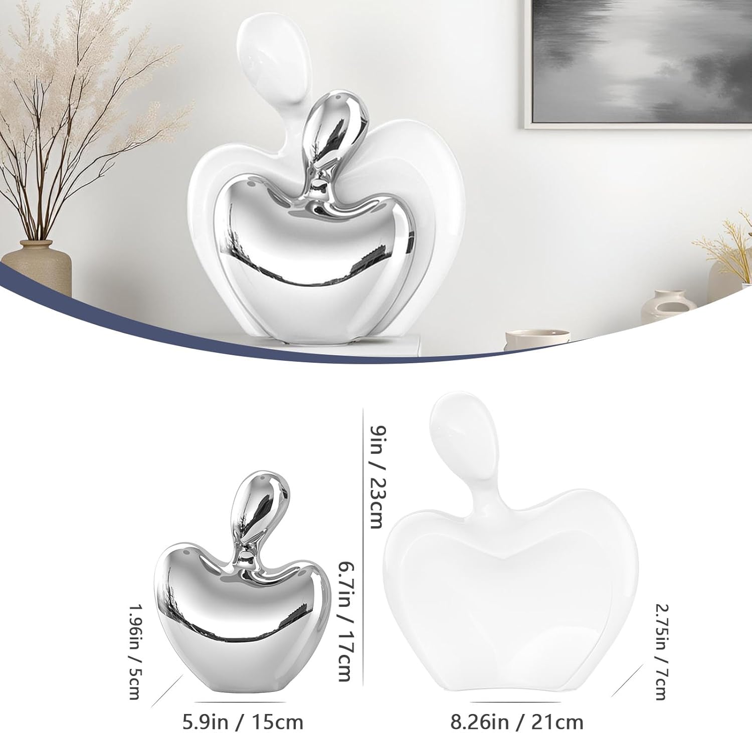 - Made of ceramic 。Man statue: 8.26" L x 9" H; Woman statue:6" L x 6.6" H.The sculpture is composed of sturdy ceramic material