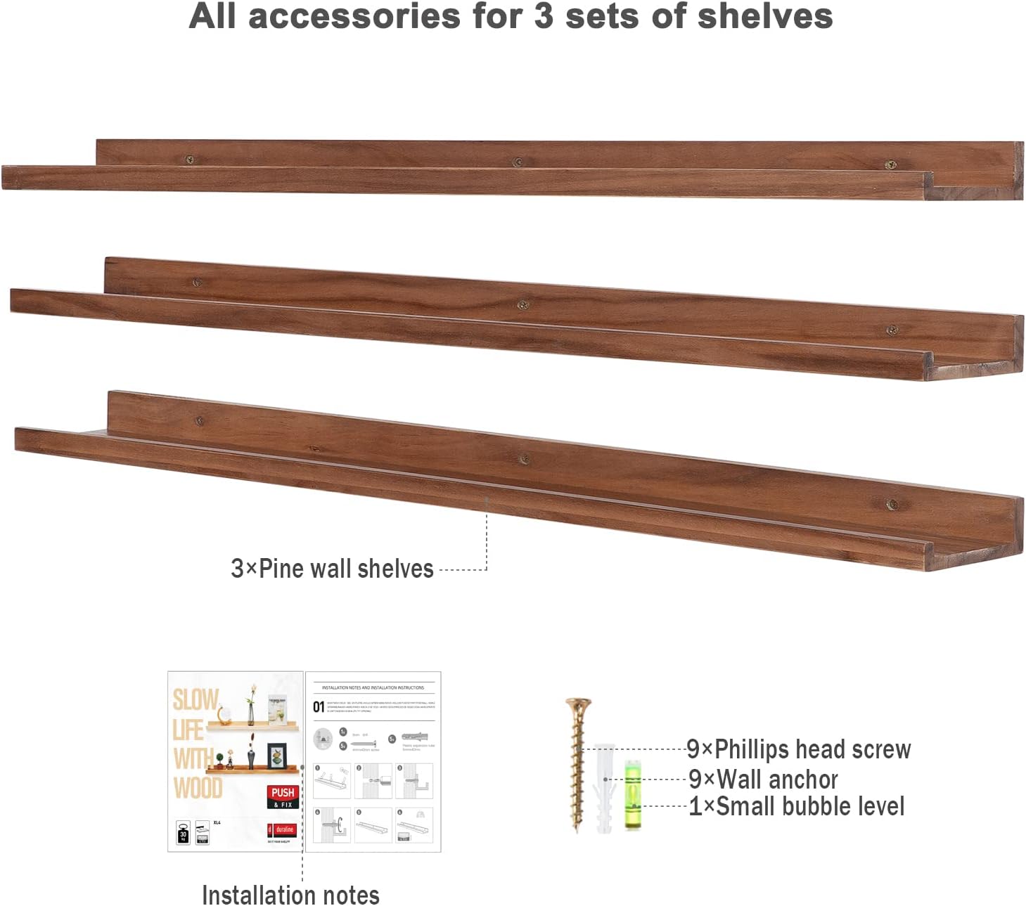 - High-quality Floating Wall Shelves:Size-48 x 4.5 x 2 inches. The picture ledge shelves are made of 100% high-quality solid wood without special processing, which retains the wood texture and blends unique colors. The floating bookshelf is not easy to deform without external force extrusion.