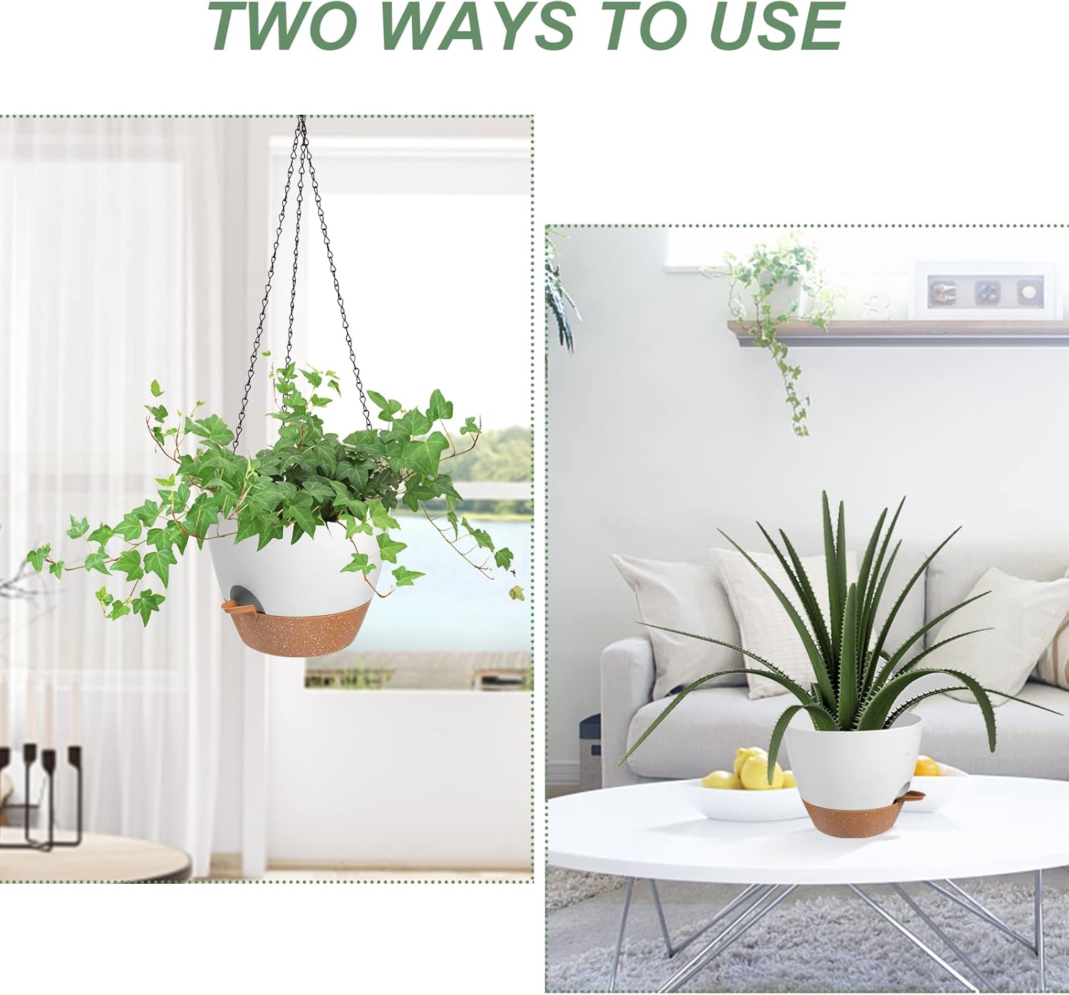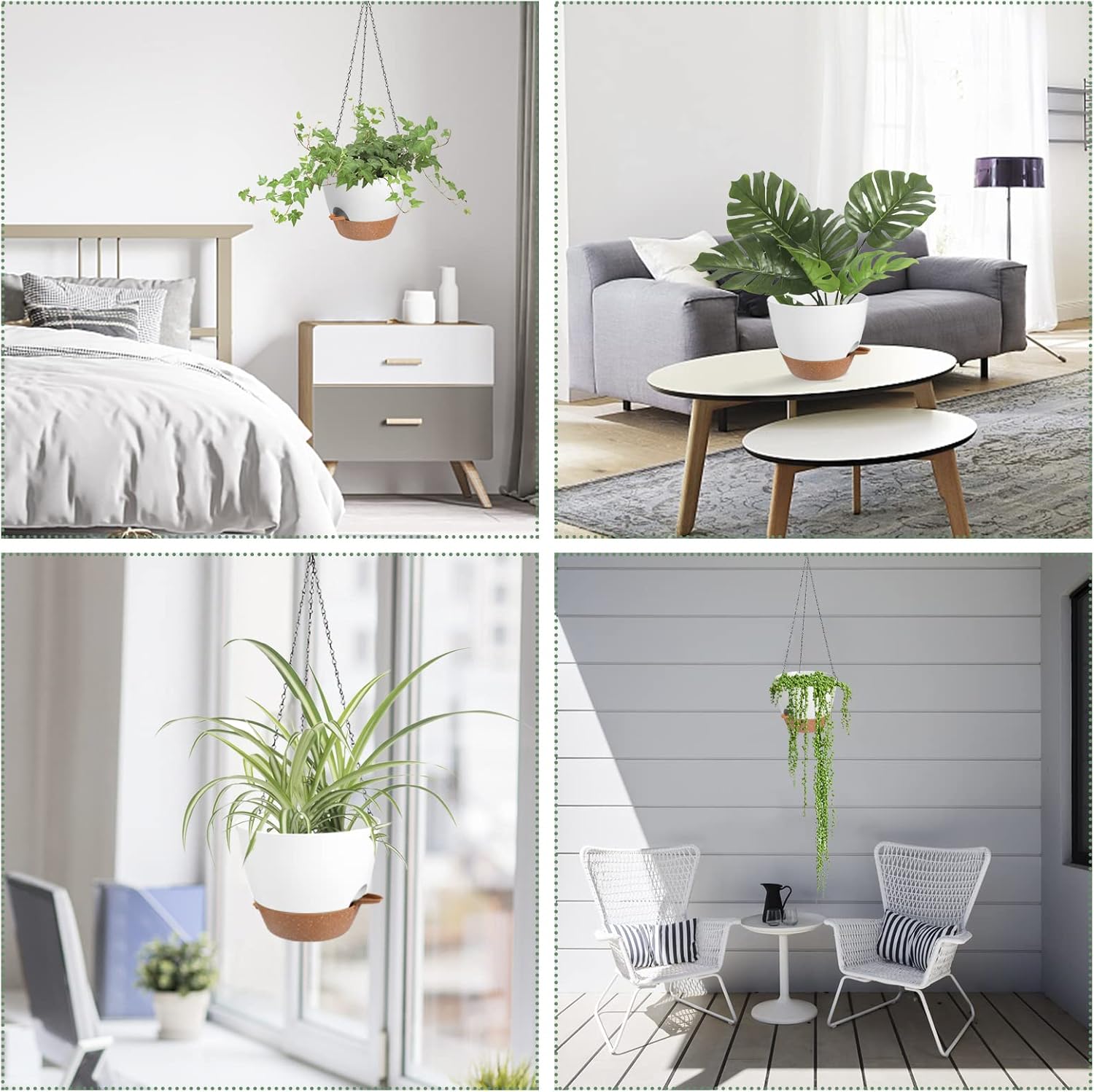 - Versatile Use: The indoor/outdoor hanging planters are perfect for patios, gardens, balconies, and indoor spaces to add a touch of greenery.