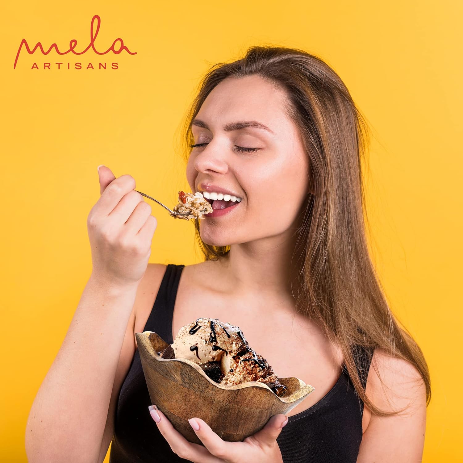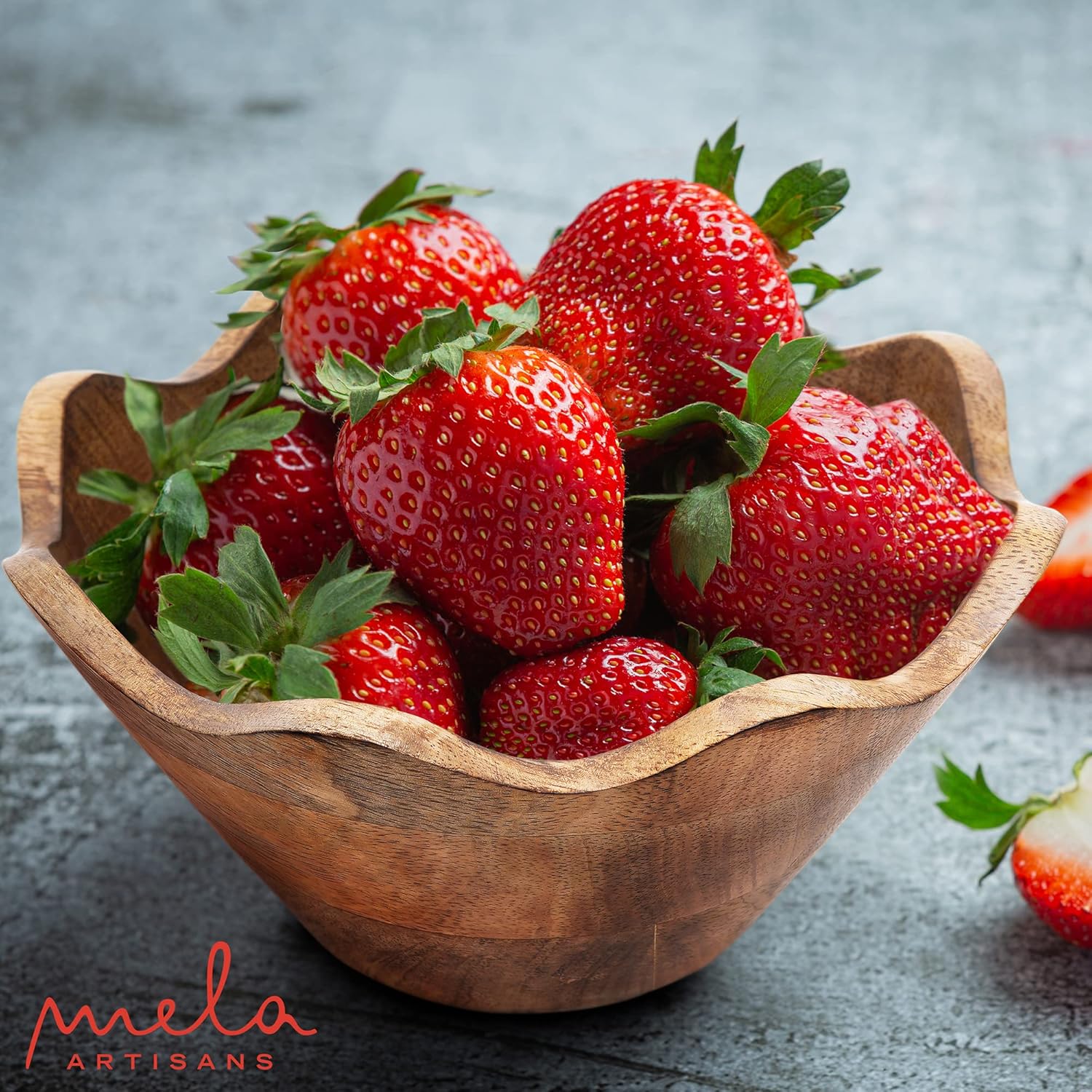 Mela Artisans Wooden Scalloped Bowl - Small | Ruffle Decorative Style | Rustic Kitchen Decor | Mango Wood | Natural Grain Finish | Fits Bread, Fruits, Salad or Popcorn | 8” x 4” x 7”