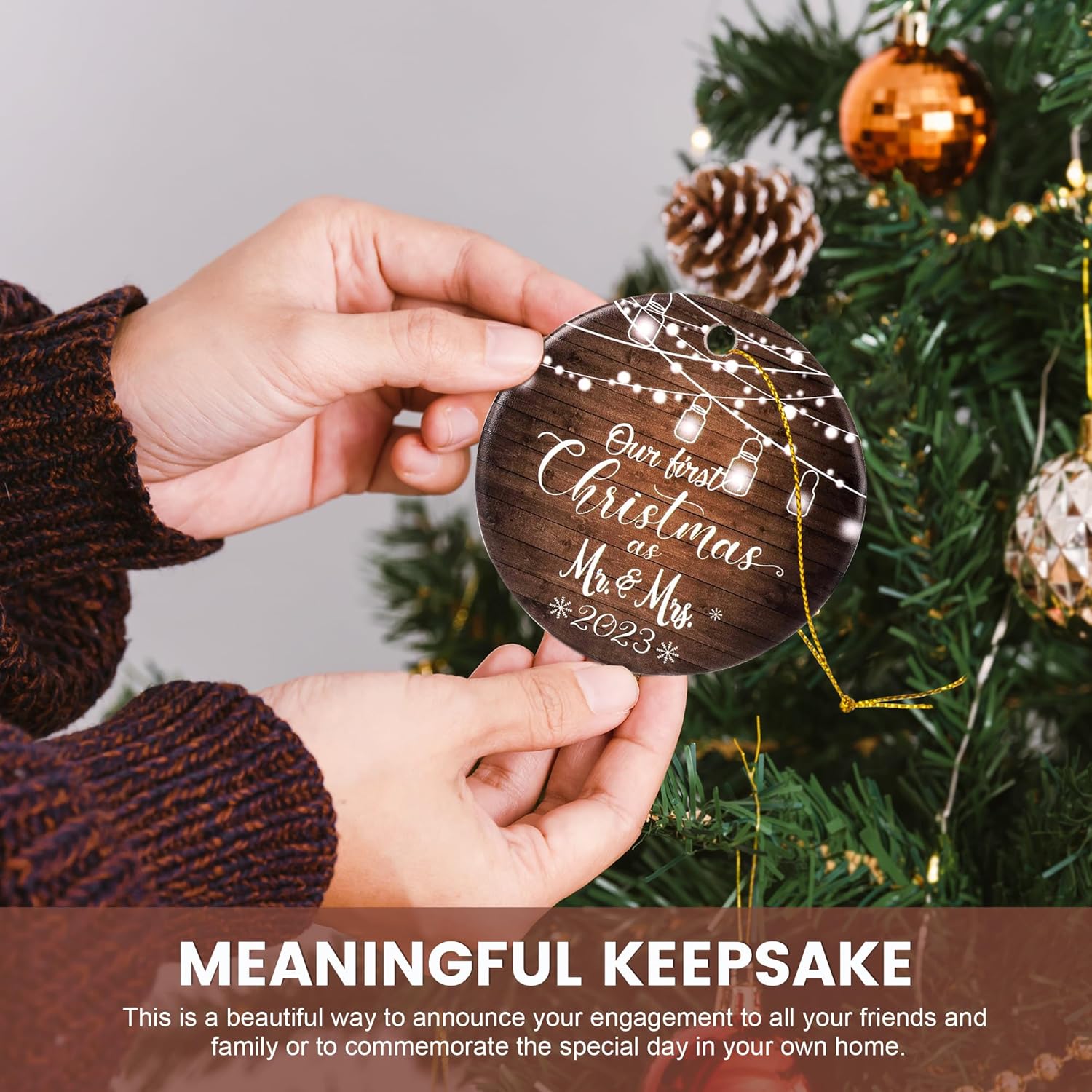- Let the world know it's meant to be this holiday season with the fabulous genuine ceramic, we're married! This is a beautiful way to announce your engagement to all your friends and family or to commemorate the special day in your own home. Add that extra special touch to your tree this year with our Mr & Mrs Ornament