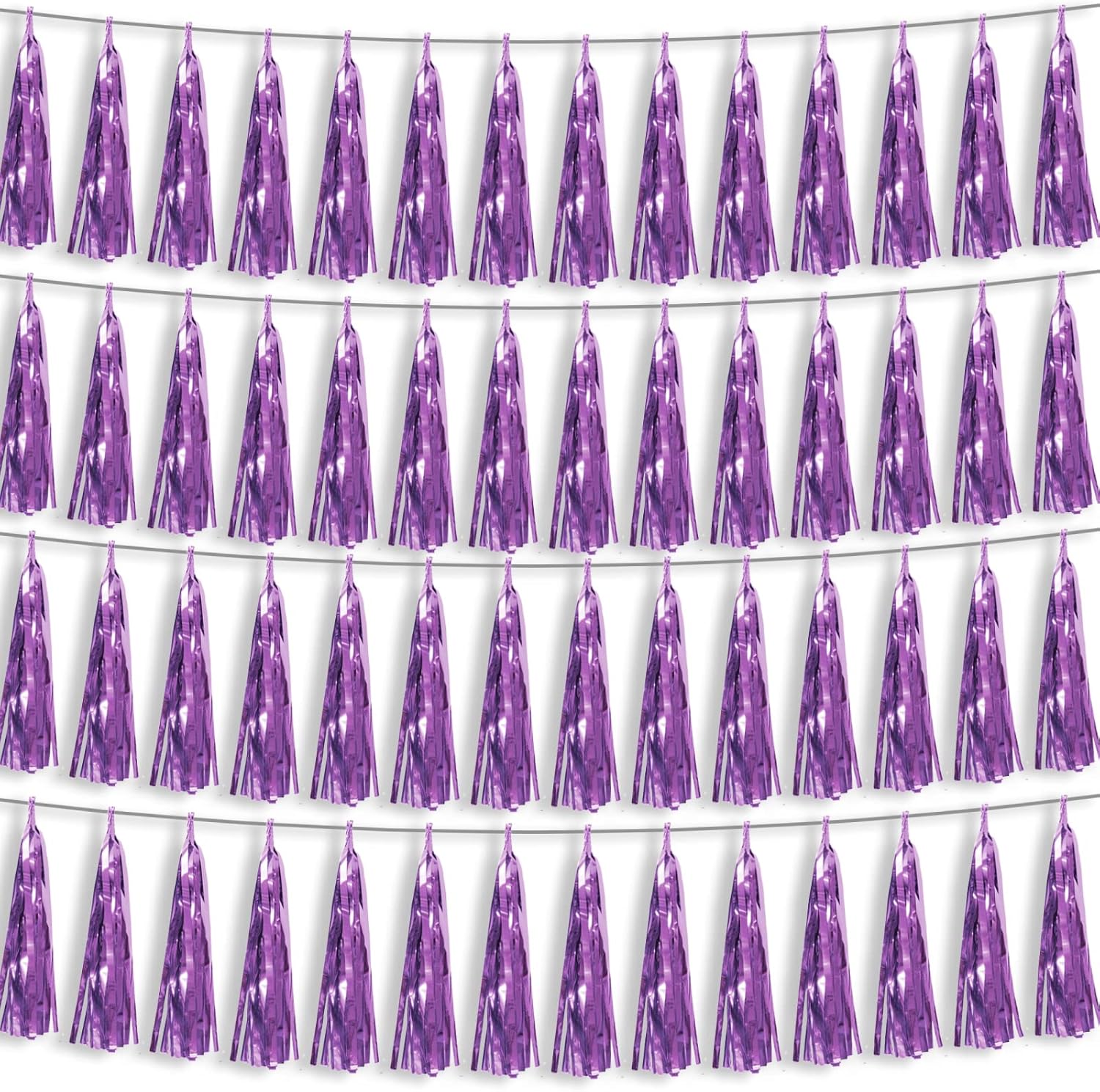 4P Light Purple Foil Fringe Metallic Streamers Banner Tassel Garland for Parade Floats, Bachelorette, Wedding, Birthday, Halloween, Christmas, Bridal/Baby Shower Party Decorations
