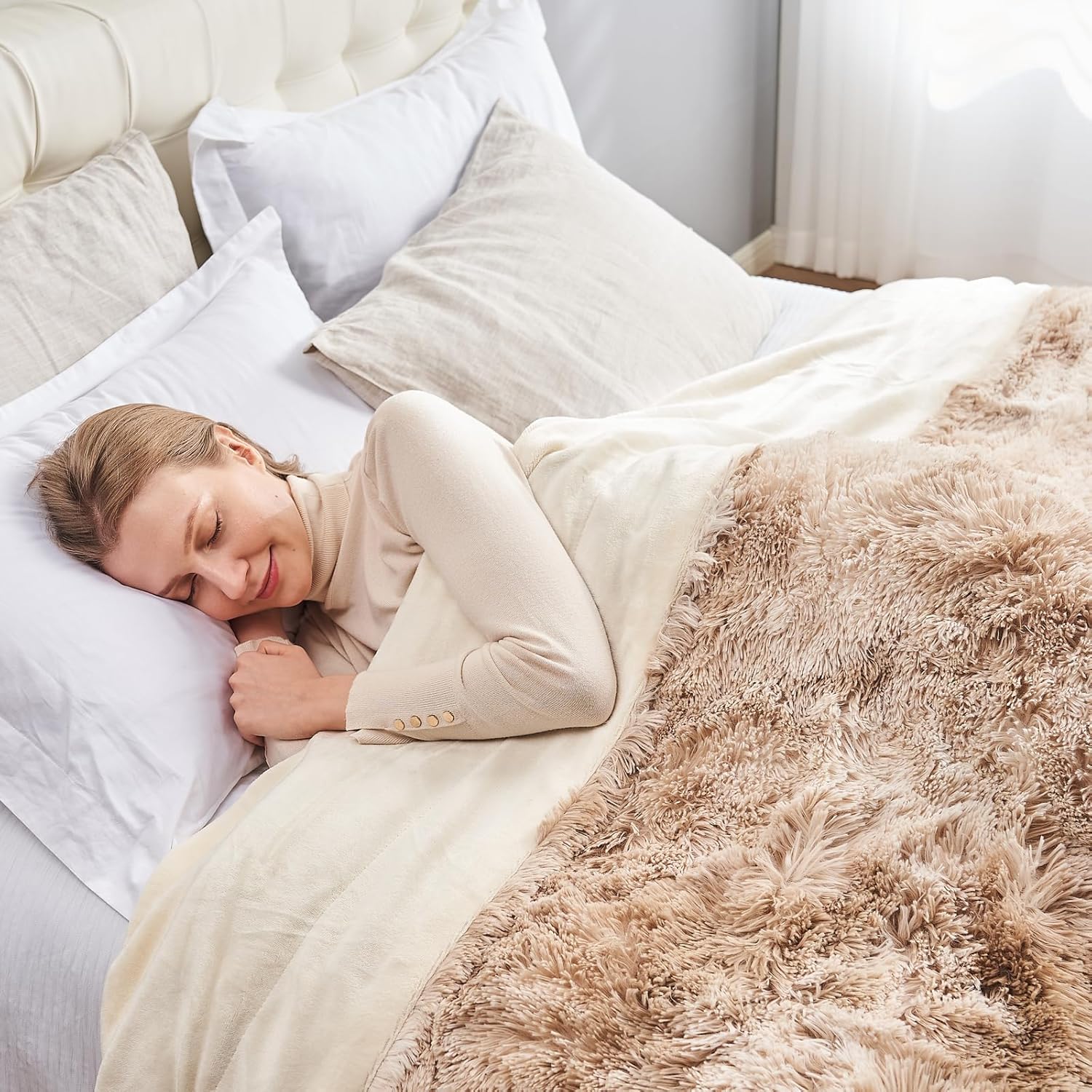 GONAAP Fuzzy Faux Fur Throw Blanket Queen Size Tie-dye Beige Super Soft Cozy Plush Fuzzy Shaggy Blanket for Couch Sofa Bed (Tie-dye Beige, Queen(90"x90"))