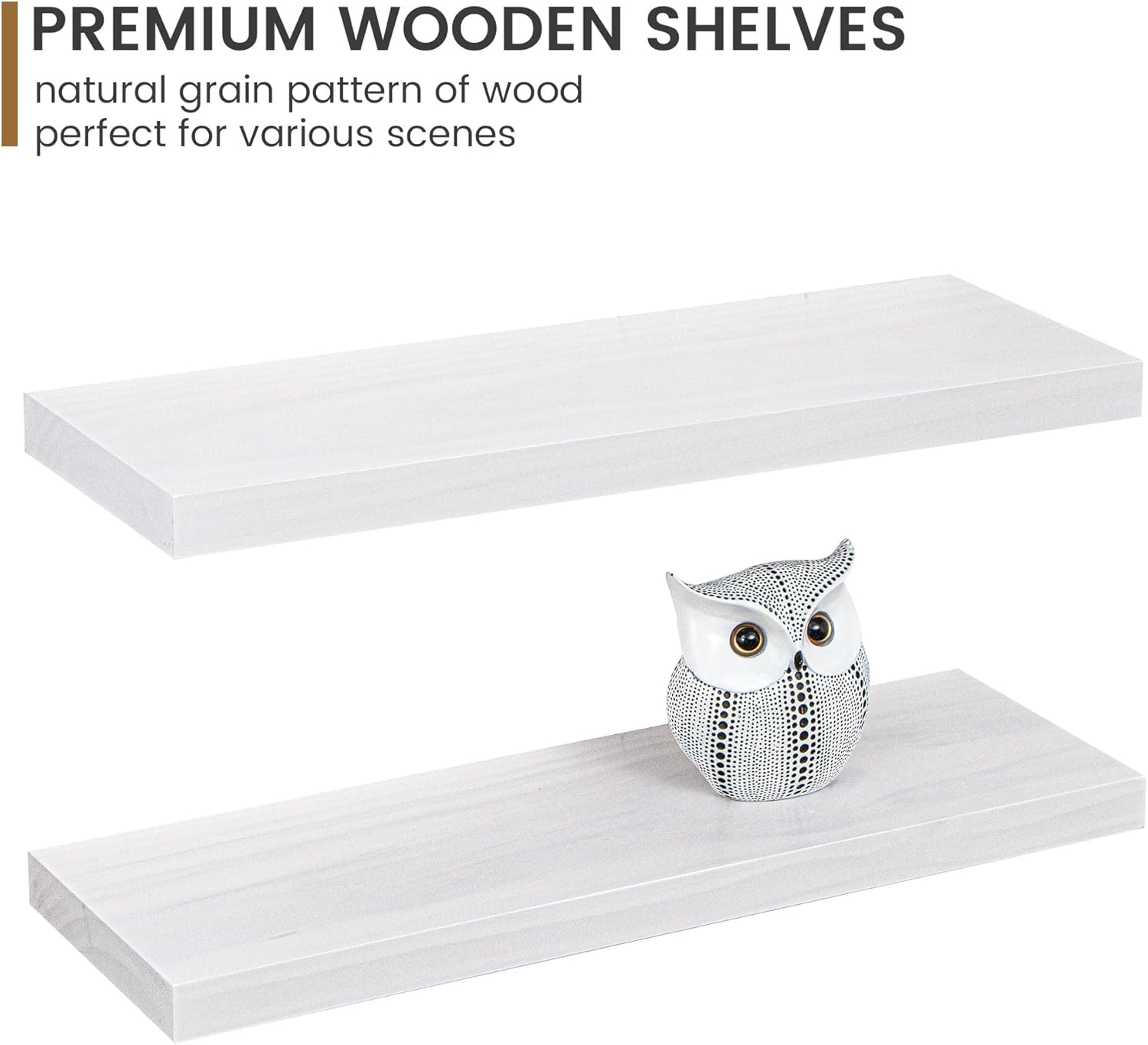 - Multi-scene & Functional - Our wall-mounted shelves are not only aesthetically pleasing but also highly functional, making them an ideal choice for various settings in your home. Use them to showcase your collection, display books, or highlight prized possessions. These shelves are perfect for exhibiting photo frames, small plants, models, or audio equipment in your living room, office, or study.