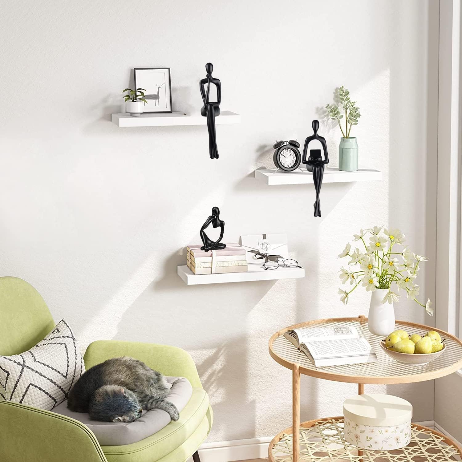 Home Decor Thinker Statue Accents, Set of 3 Thinker Sculptures Office Decor Modern Abstract Resin Decoration on Shelf Table Desk for Living Room Office Bedroom (Large Black)