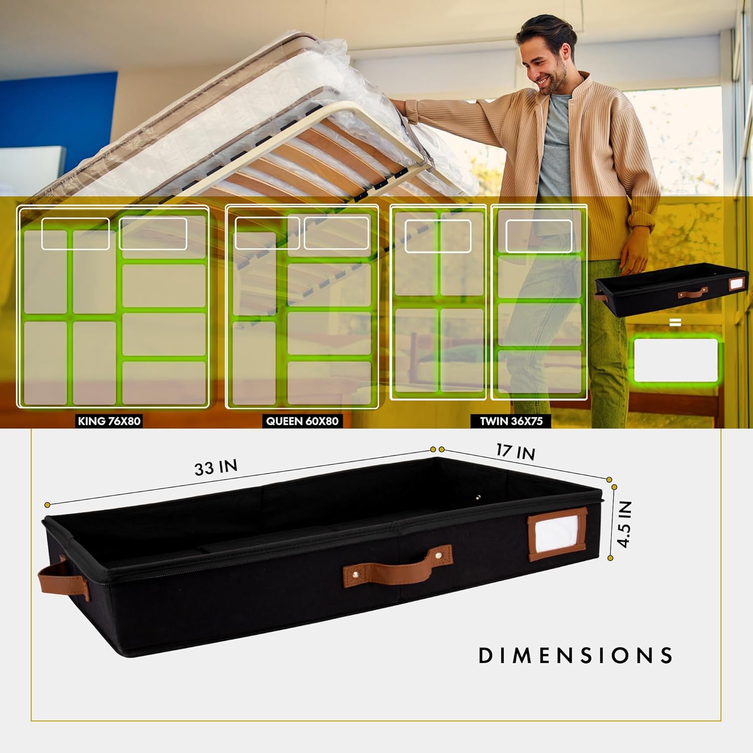 - ๐๐ฎ๐ฉ๐๐ซ๐ข๐จ๐ซ ๐๐๐ง๐ฏ๐๐ฌ & ๐๐๐ญ๐๐ซ๐ข๐๐ฅ: Made from premium quality canvas fabric, our 33x17x4.5" Plastic Under Bed Storage Containers With Lids are durable, sturdy, & carefully designed to hold large quantities of clothes, blankets, shoes, & various bed accessories. These low profile storage containers are designed to be an efficient bed room organization and storage. Our low profile under bed storage pack comes with under bed organizer that will easily blend into your home's aesthetic style.