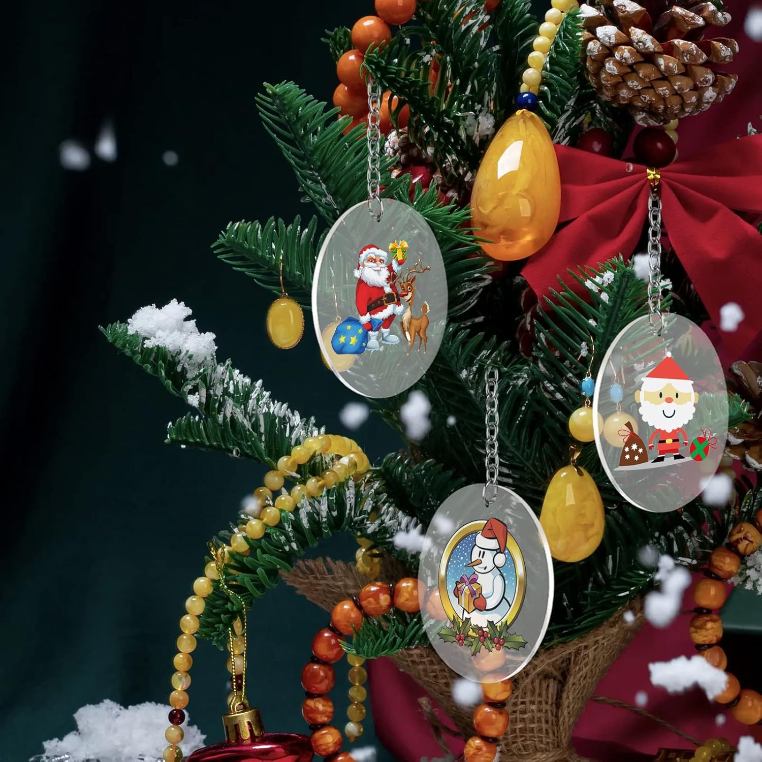 - These blank round acrylic ornaments can easily be hung on Christmas trees and yards to create a wonderful holiday atmosphere