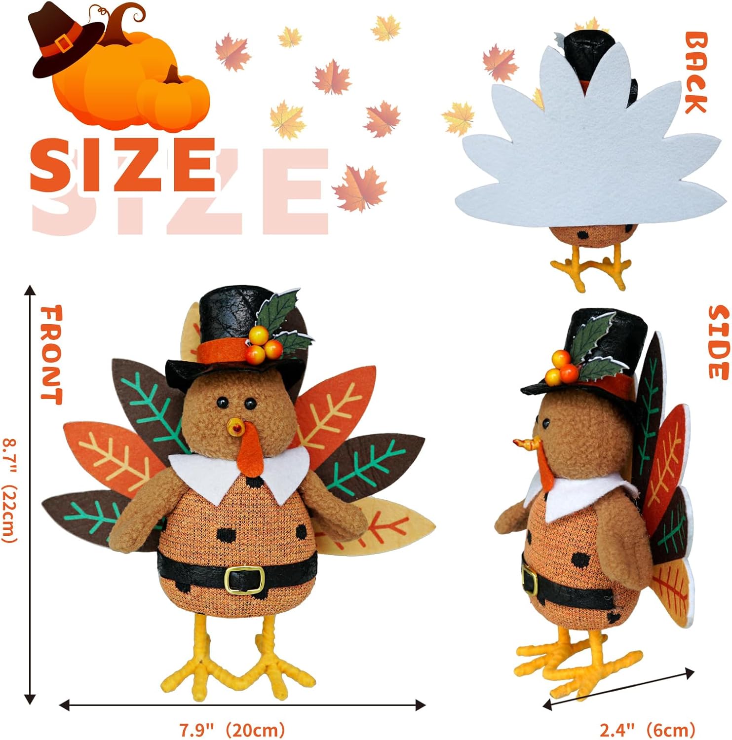 CRCZK Thanksgiving Turkey Decoration Fall Harvest Tabletop Decor Standing turkey with Dangling Legs, 2 Pack Plush Stuffed Turkeys Shelf Figurine Gift for Autumn Fall Harvest Halloween Home Decorations