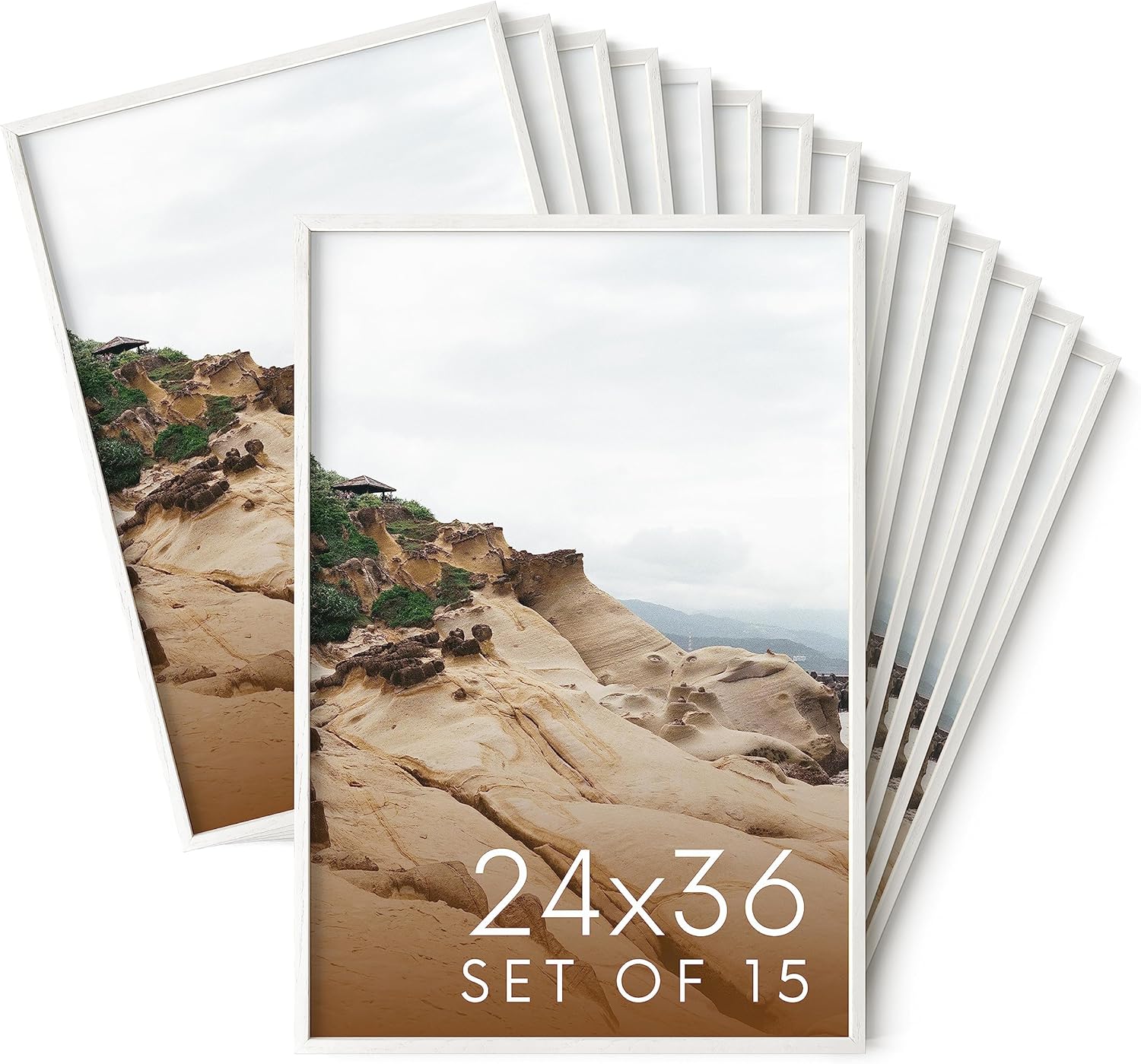 Haus and Hues 24x36 White Oak Wood Picture Frames Set of 15 - Premium Bulk Picture Frames 24x36 Bundle - Elegant Gallery Wall Frame Set for Posters, Art Display - Ideal for Wall Decor in Home & Office