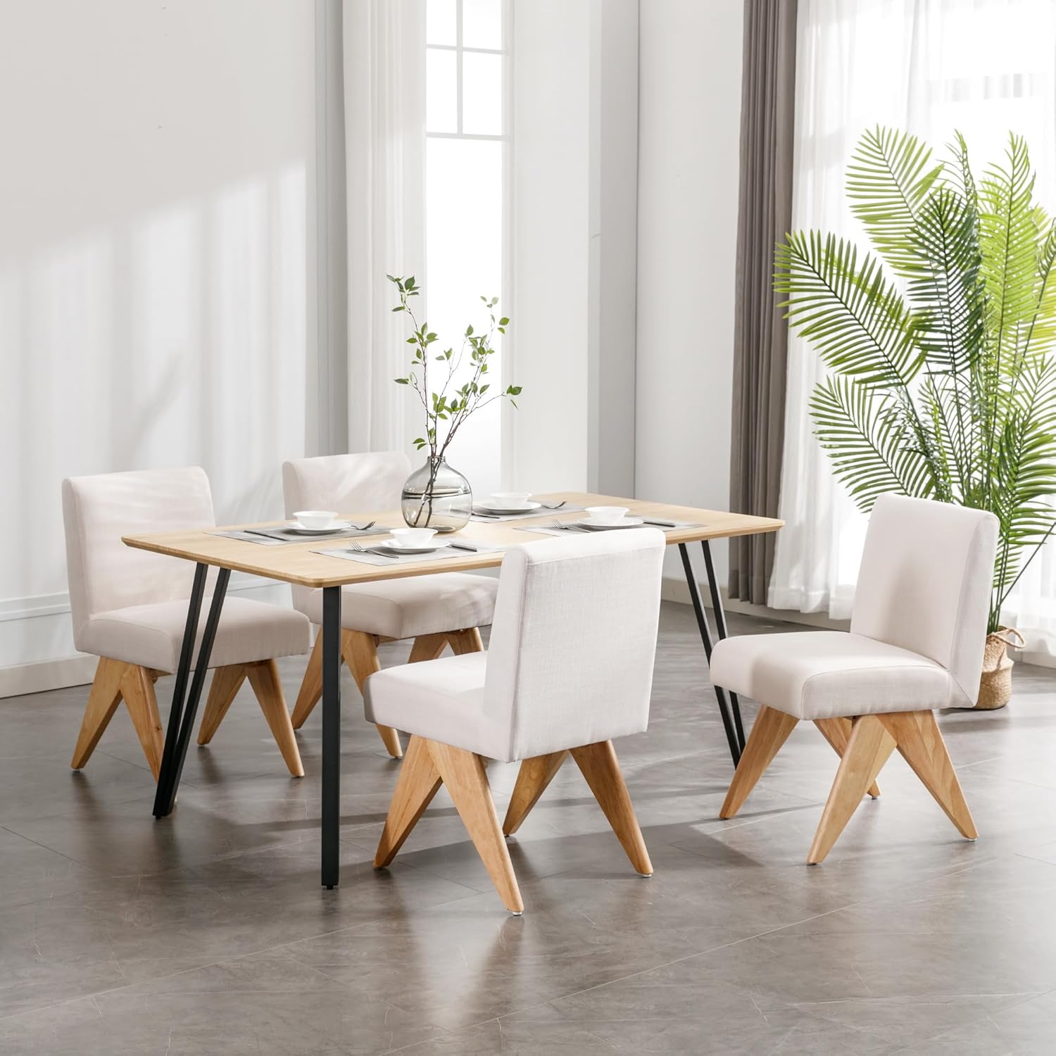 Mid Century Modern Farmhouse Dining Chairs Set of 6, Upholstered Armless Kitchen Chairs with Back and Wooden Legs, Linen Beige