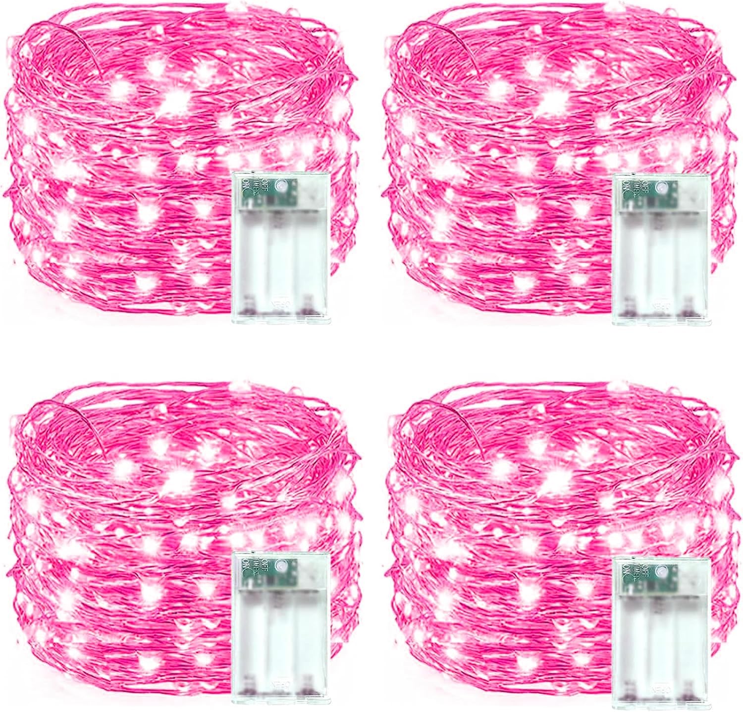 4 Pack 20FT 60LED Fairy Lights Battery Operated, Mother's Day String Light with Timer Waterproof, Battery Twinkle Lights for Girl's Bedroom Wedding Anniversary Decorations (Pink)