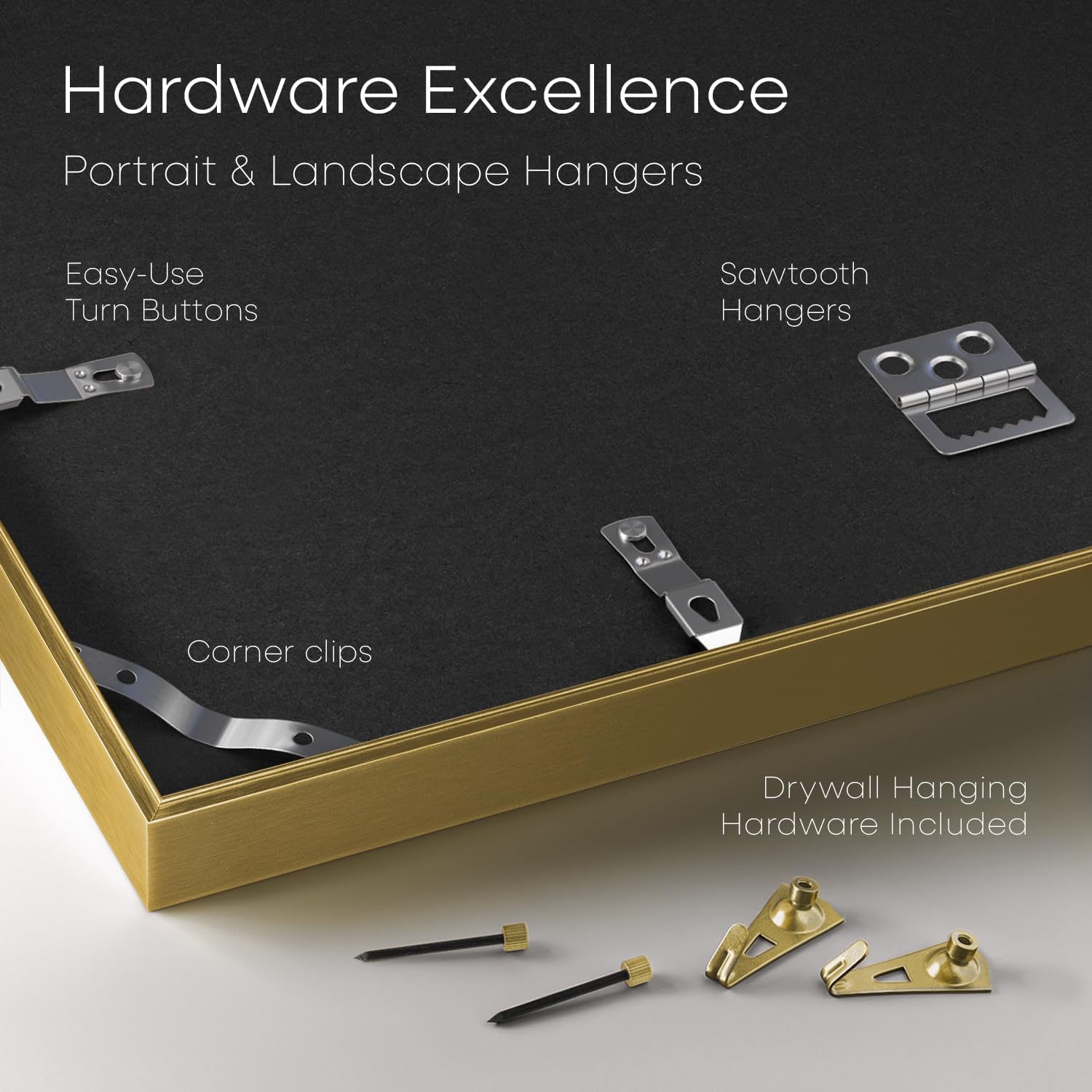Homeforia 20x28 Picture Frame Gold, High End Metal 20 x 28 Poster Frames with Mat 14 by 22 Photo, 20x28 Gold Frame Matted to 14x22 Print, 28x20 Large Hanging Frames, Tempered Glass, Wall Kit, Set of 1
