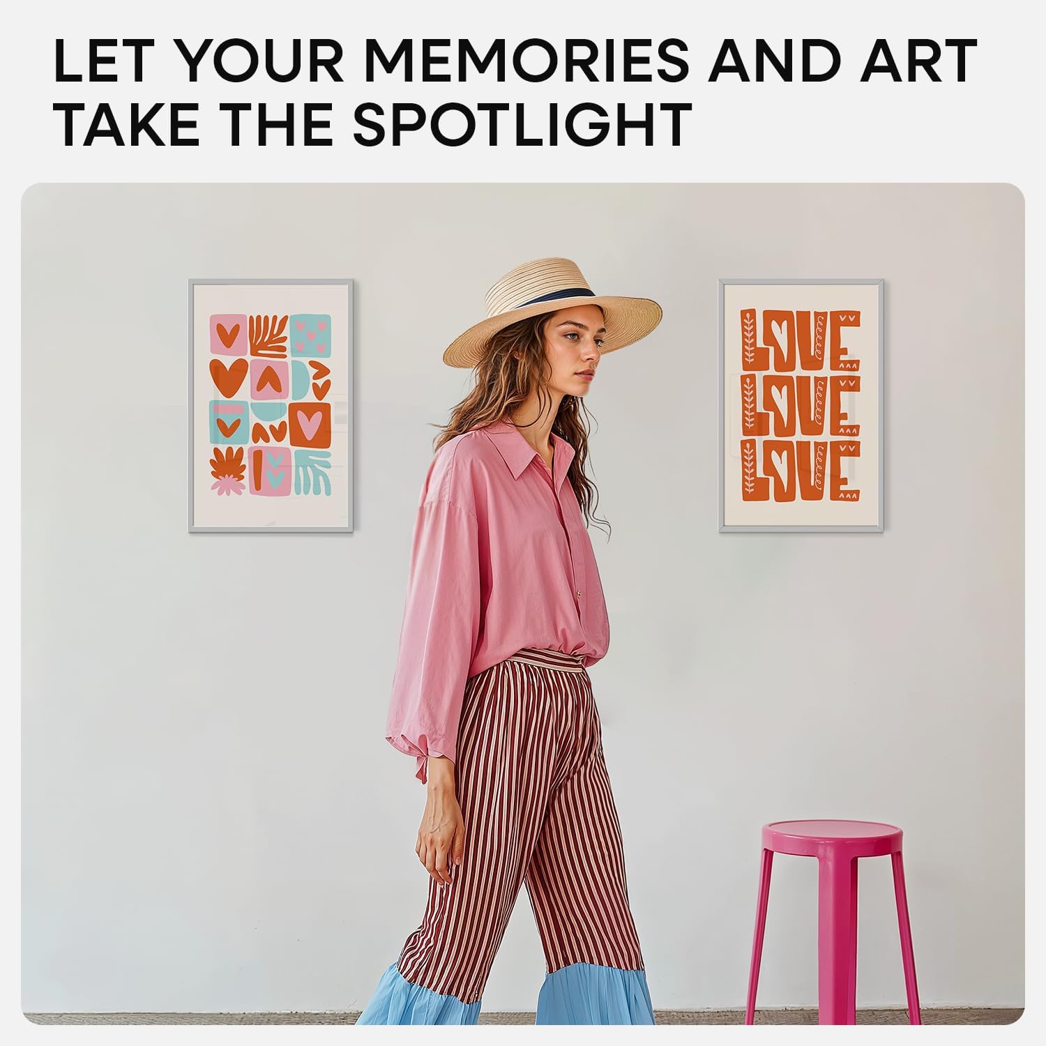Homeforia 11 x 17 Frame Silver, High End Metal 11x17 Picture Frames with Mat 8x12 for Photo, 11 x 17 Silver Poster Frame Matted to 8 x 12 Print, 17x11 Hanging Frame, Tempered Glass, Wall Kit, Set of 1