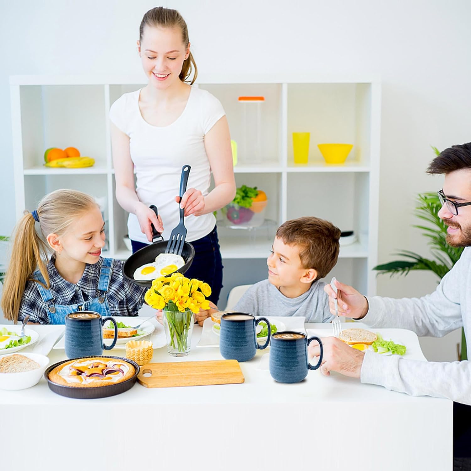 - FUNCTIONAL AND PRACTICAL: The blue mugs measure 4.7*3.1*4.1inch which is large and deep to hold any of your favorite beverage. With a capacity of 15 oz, these mugs set are perfect size to hold coffee, tea, milk, cocoa, cappuccino and hot chocolate. Suitable for home, office, party and holiday.