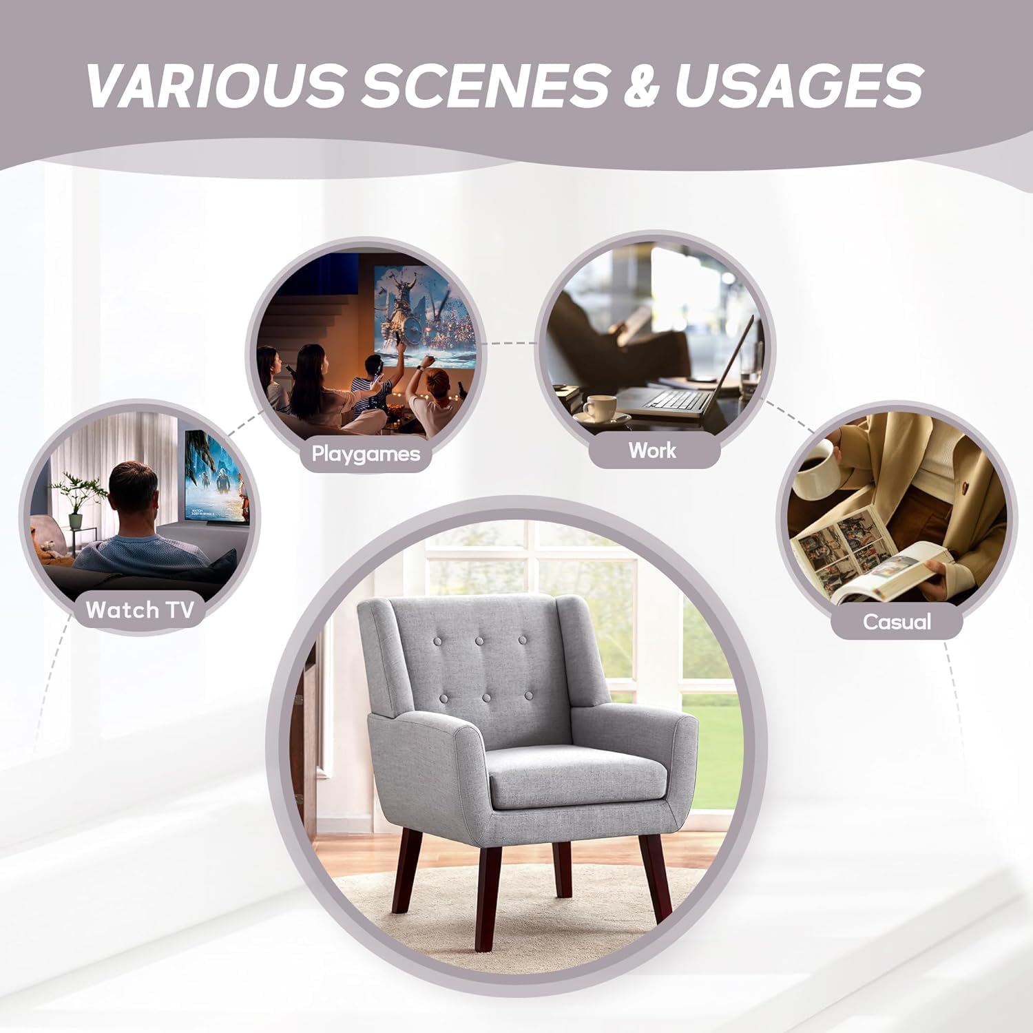 - Modern Style Design: The living room chair is designed with a simple and classic appearance to match any interior decoration style of your home. The tufted buttons of the living room chair back cushion are natural and the fabric is soft to the touch. Also available in six colors, adding a classic flair to your room is the versatile decorative chair you use