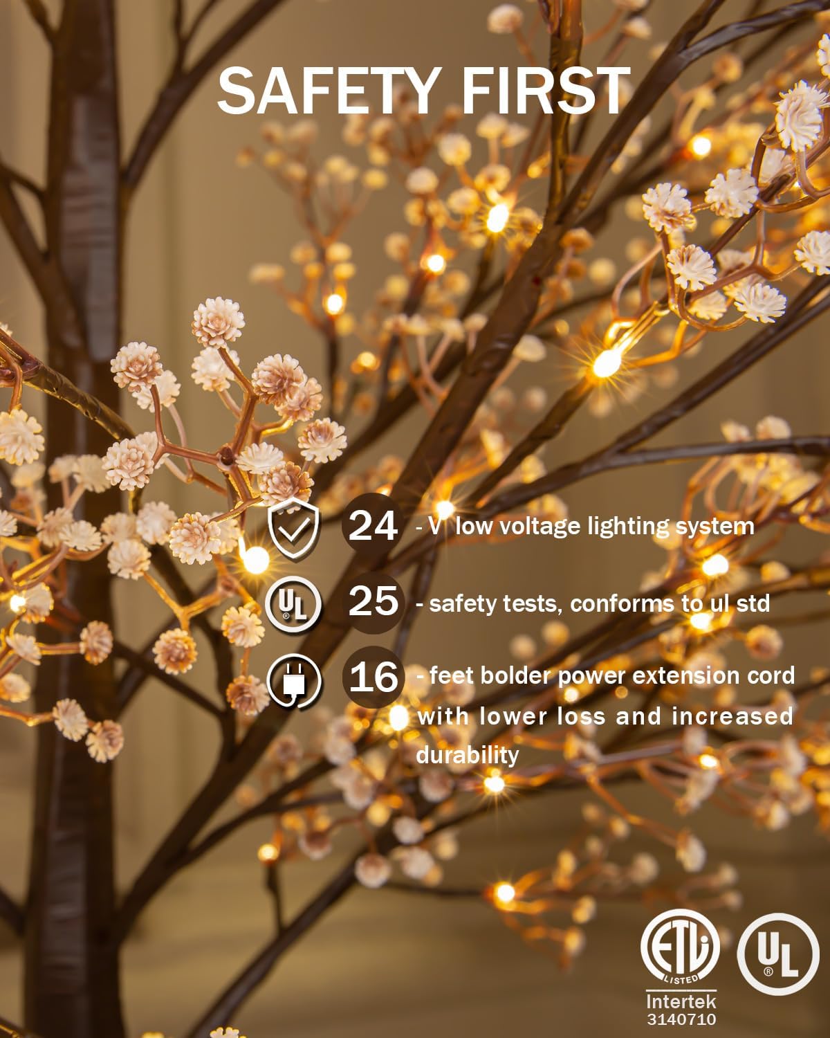 4ft Lighted Baby's Breath Tree with 64 Warm White LED Lights for Holiday Decor - Dimmable, UL Certified, Waterproof - Ideal for Indoor and Outdoor Decoration