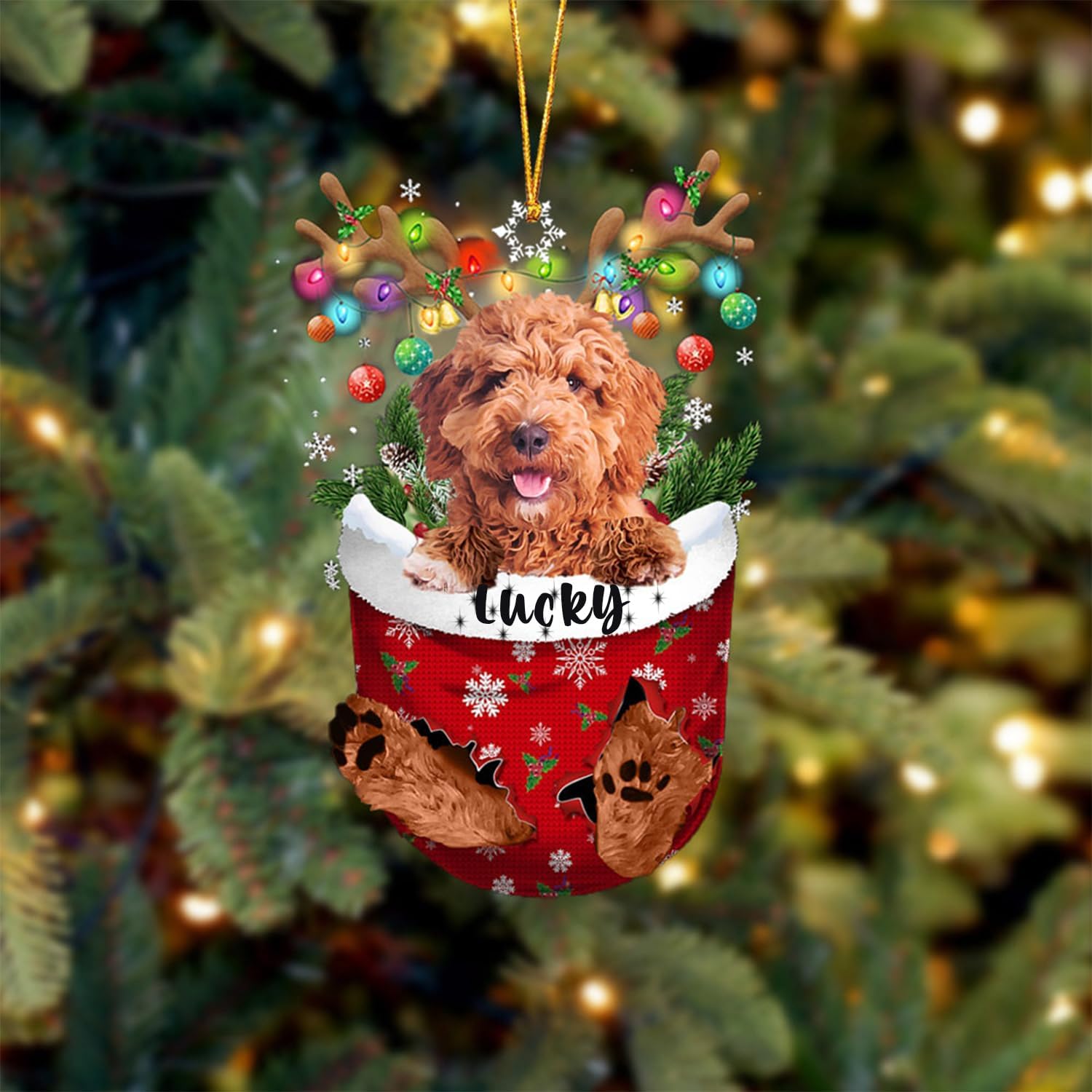 Irish Doodle Dog Christmas Ornament, Irish Doodle in Snow Pocket Christmas Tree Ornament, Dog Lovers Gift Idea Xmas Decor, Christmas Decorations for Tree, Christmas Ornament Gift for Dog Lovers