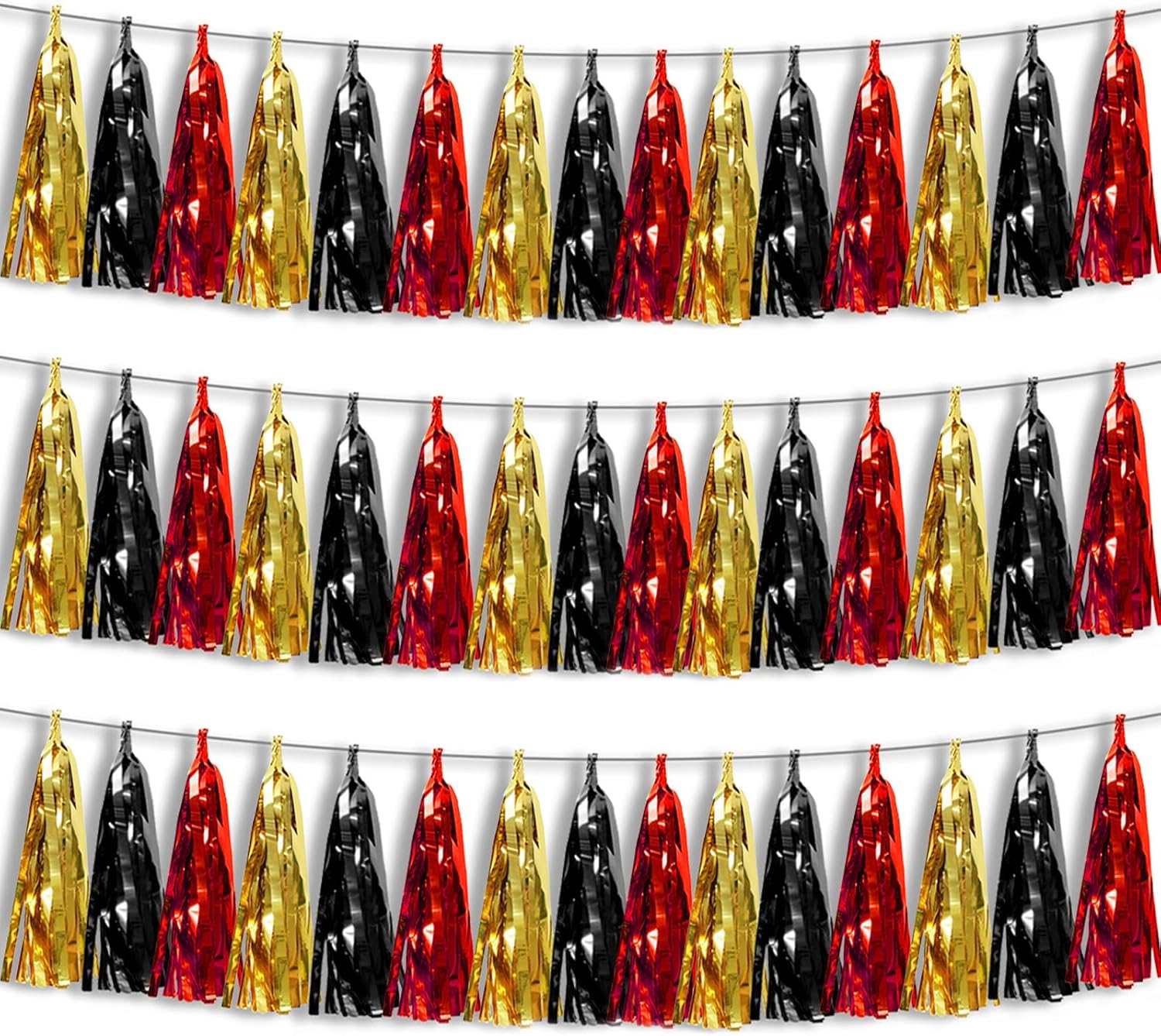 - 【Perfect Party Decoration】The black red gold tinsel garlands are designed in a metallic Fringe, bright, and beautiful, at the same time, they shine in the sun, and these gorgeous tassel garlands create a wonderful backdrop or centerpiece for your party space. and bring you, your family, and your friend's good Visual effects. your party many emotional and touching moments where a lot of pictures will be taken and everybody will have a wonderful time together.