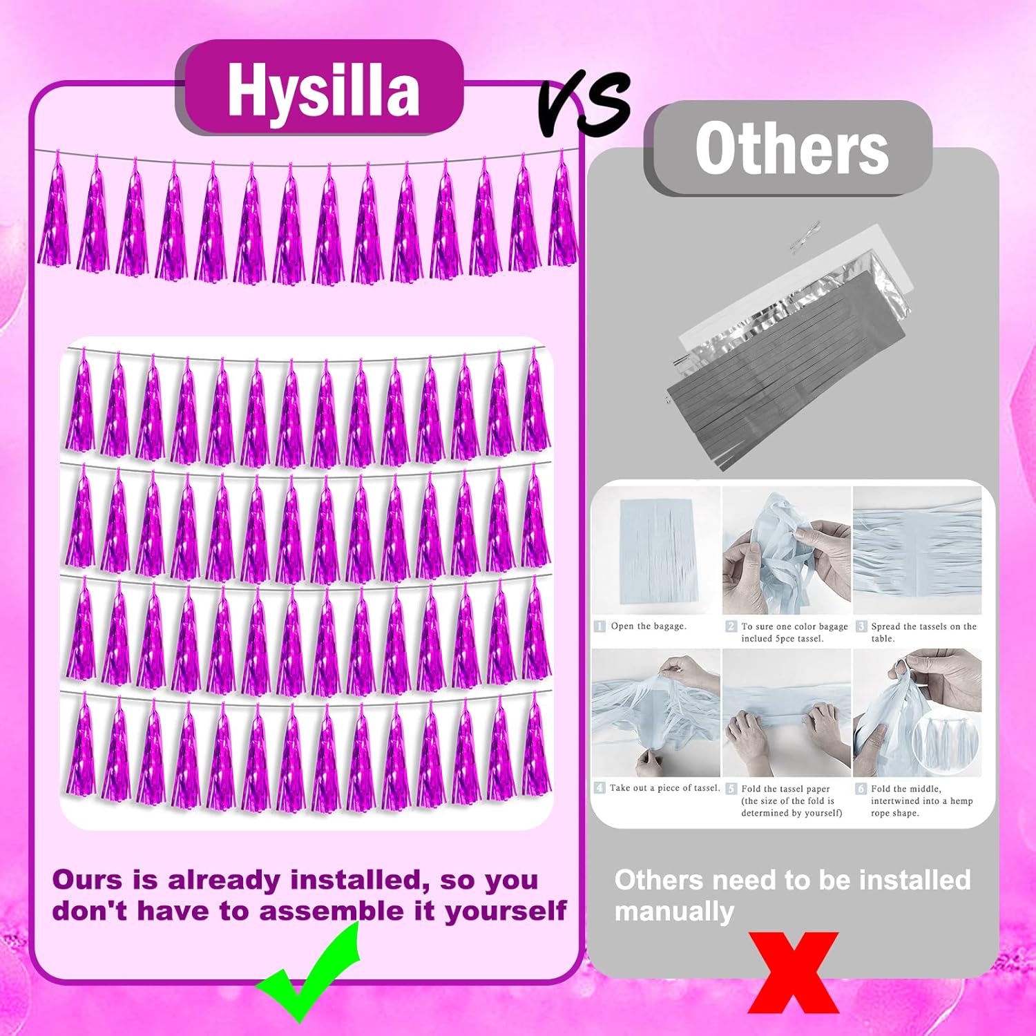 3P Fuchsia Foil Fringe Metallic Tassel Streamers Banner Tassel Garland for Parade Floats, Bachelorette, Wedding, Birthday, Halloween, Christmas, Bridal/Baby Shower Party Decorations