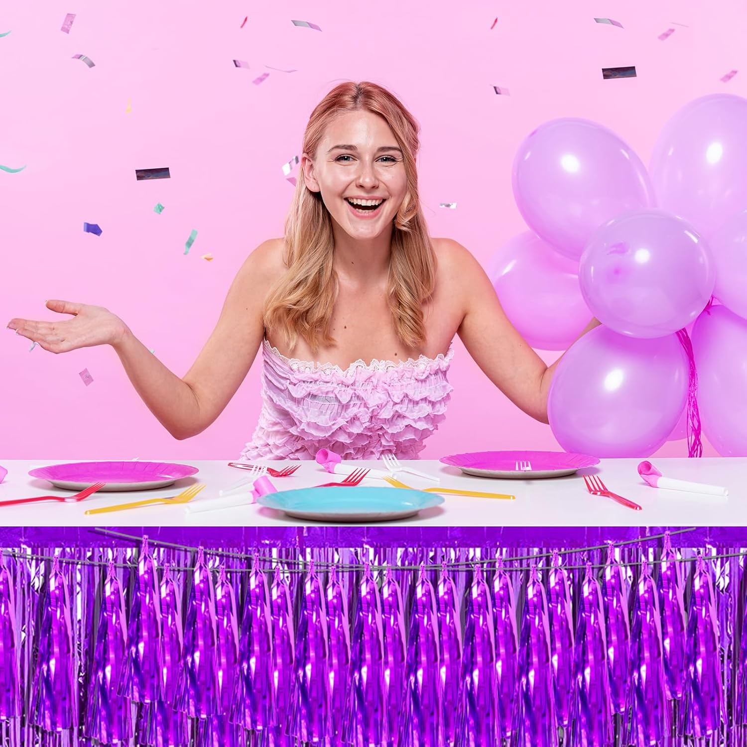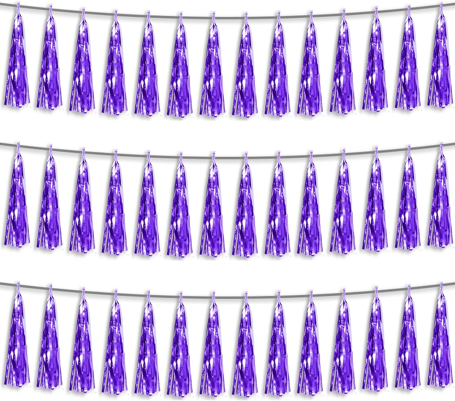 3P Purple Foil Fringe Metallic Tassel Streamers Banner Tassel Garland for Parade Floats, Bachelorette, Wedding, Birthday, Halloween, Christmas, Bridal/Baby Shower Party Decorations
