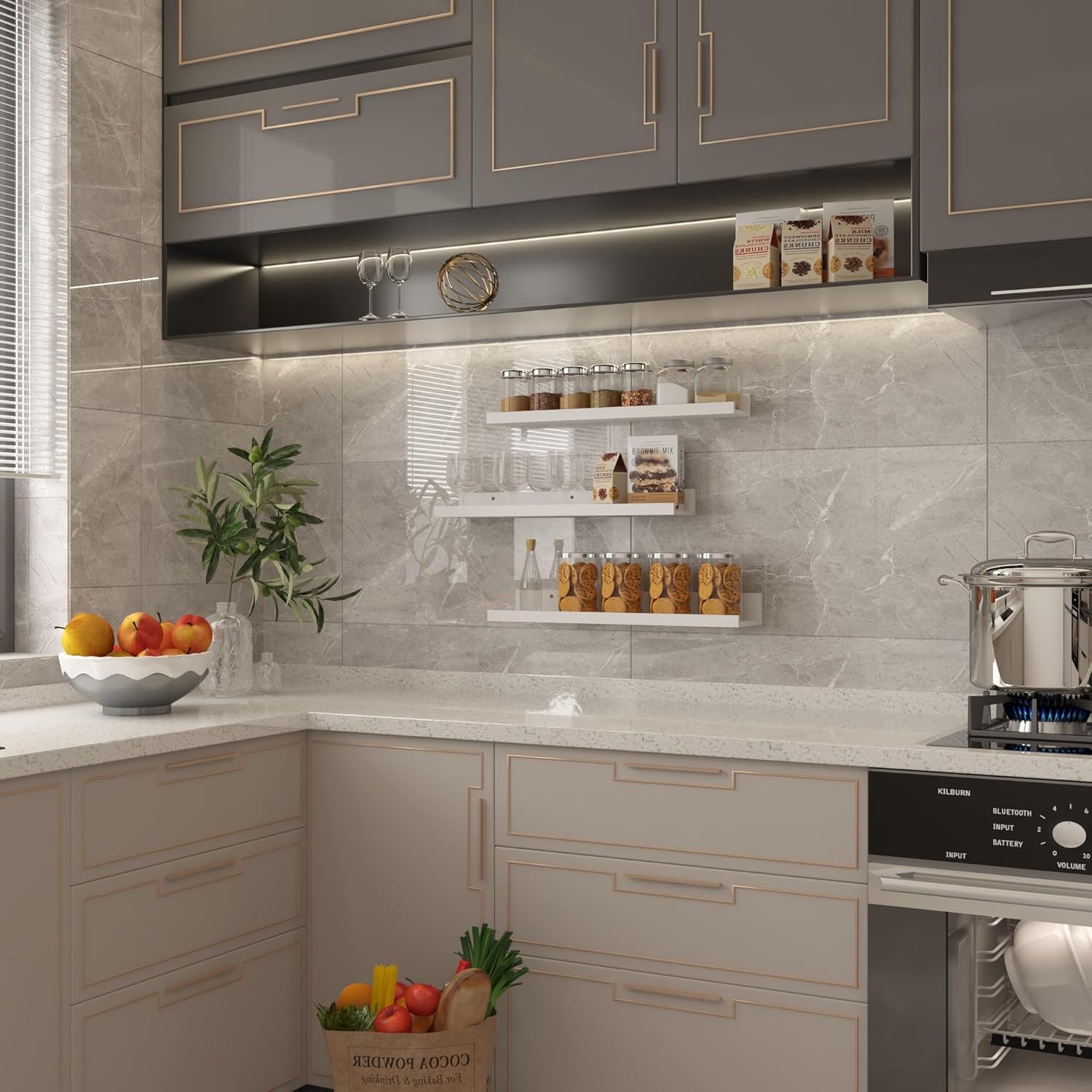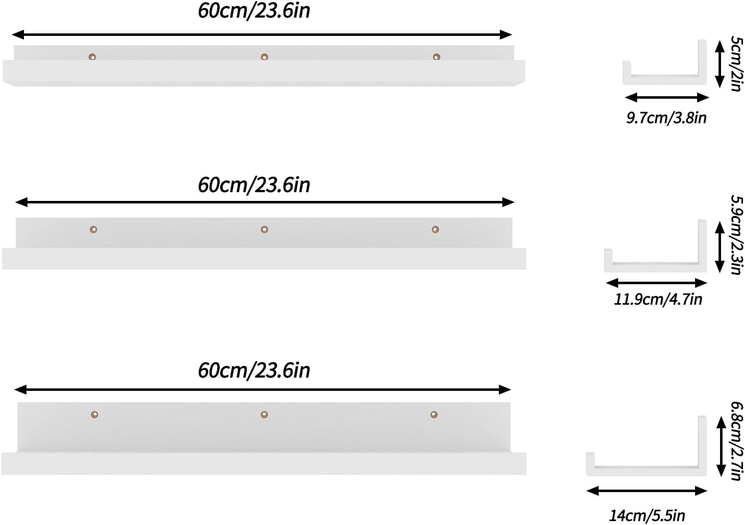 - Beautiful hanging shelves: These white wall-mounted ledge shelves are both stylish and sturdy, made of high-quality MDF board. The wood grain appearance adds a delicate touch to your room decor, making it more fashionable and modern.