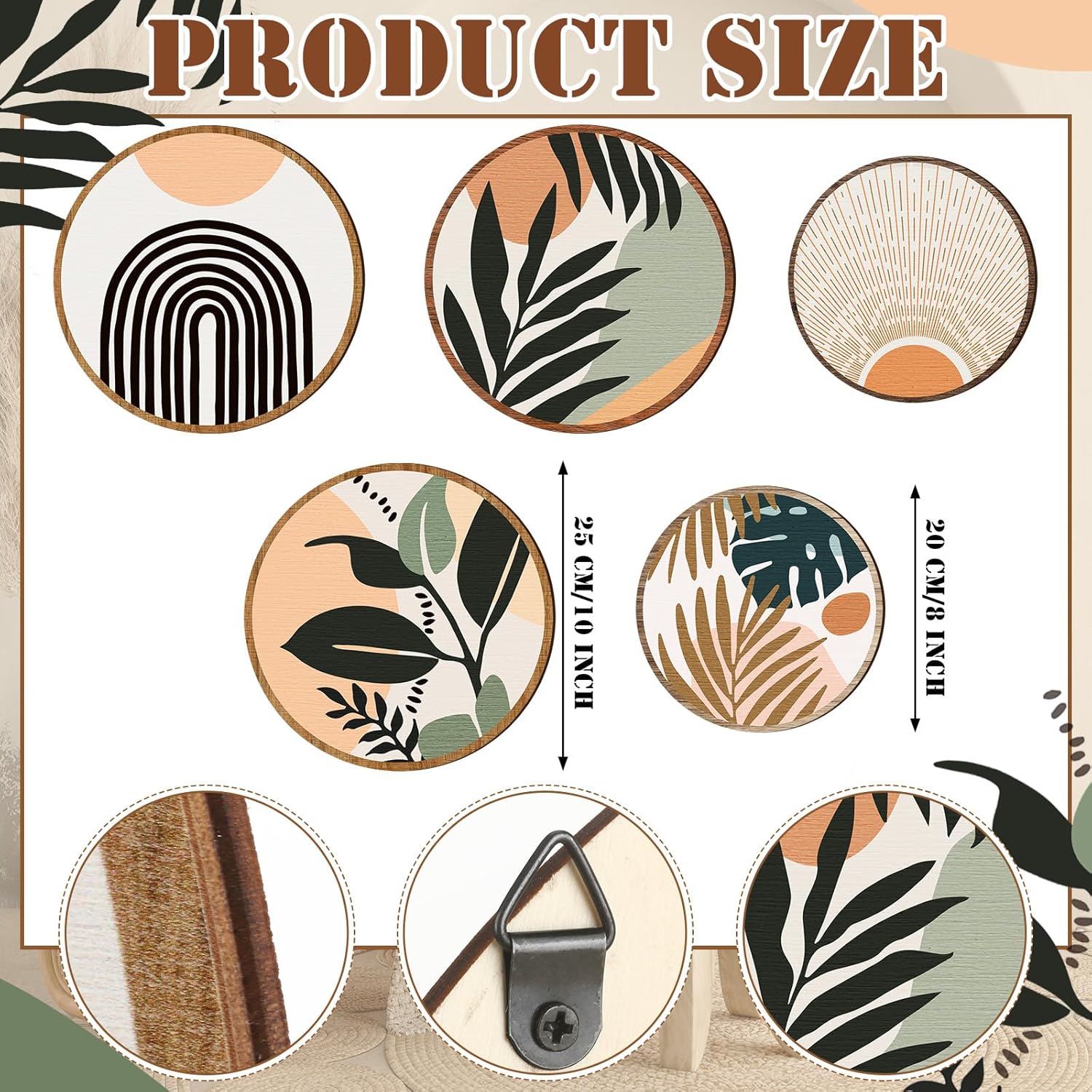 Qunclay 5 Pcs Wall Art Decor Wooden Living Room Wall Decor Bohemian Hanging Farmhouse Geometric 10'' and 8'' Aesthetic Wood Minimalist Posters for Bedroom(Boho, Leaf)