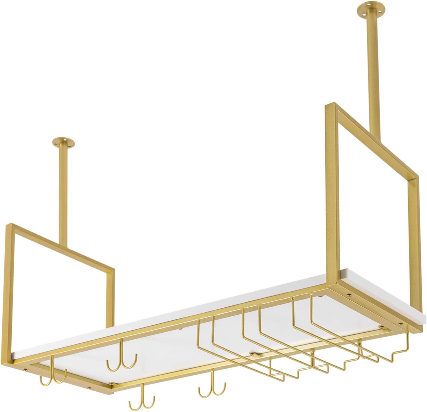- 【Widely Used】This hanging wine rack is suitable for holding any glass with a base diameter of 1.57-3.54 inches. And it can be installed in home wine cabinets, kitchens, hotels, breweries, wine cellars, bars and other food and beverage venues. It provides you with a place to store wine bottles, glasses, potted plants, books, as well as creating a unique and stylish corner for you.