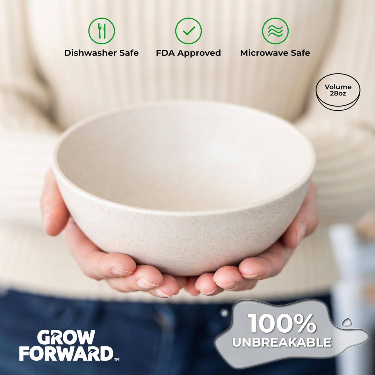 Grow Forward Premium Wheat Straw Bowls - 27oz Microwave Safe Plastic Cereal Bowls Set of 8 for Kitchen, Camping, RV, Dessert, Snack, Soup, Salad, Fruit - Reusable, Unbreakable & BPA Free - Sahara