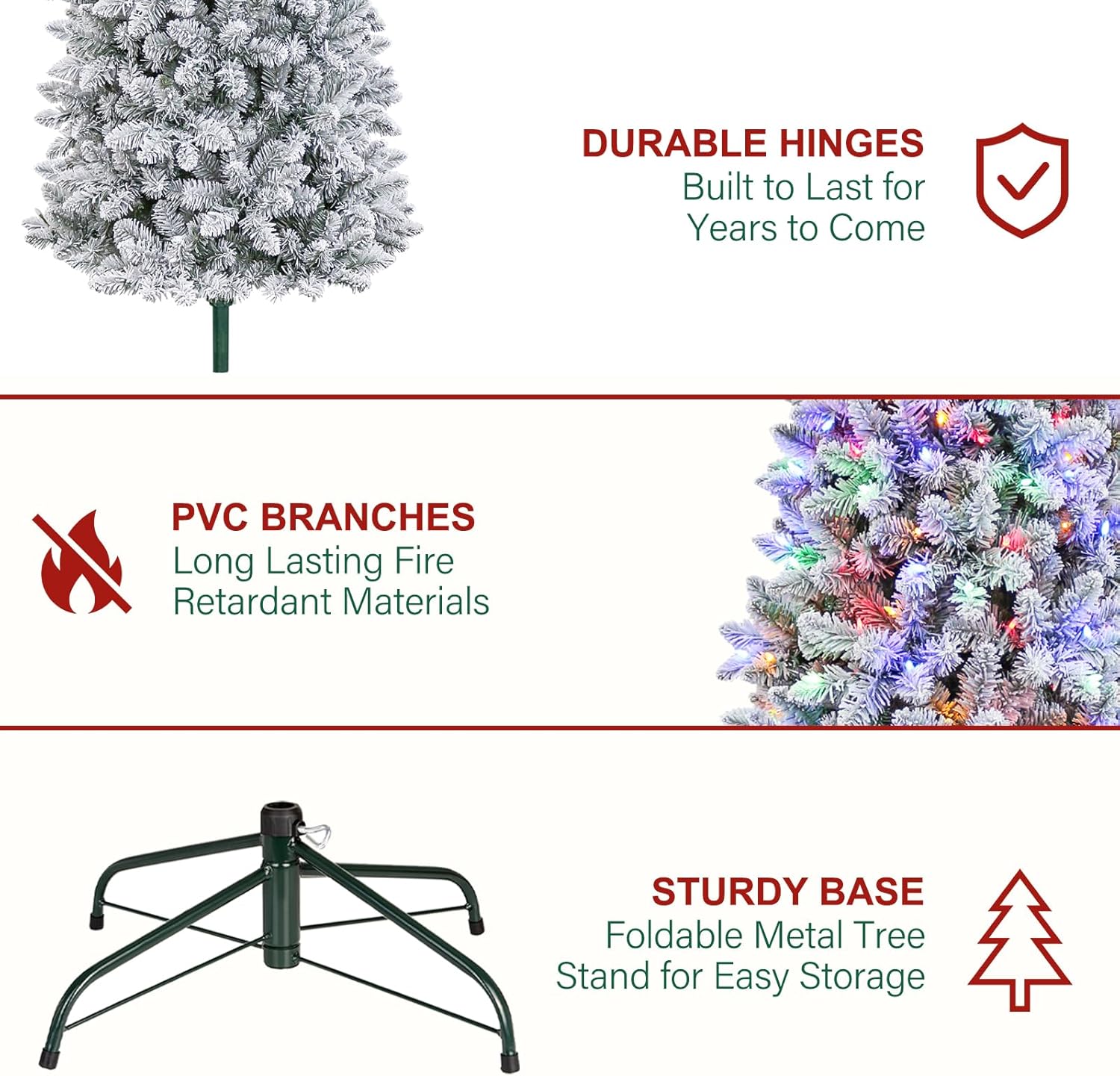 - NATURAL APPEARENCE & FULL LOOK: Measures 7.5 feet tall, 33 inches diameter at the base. Featuring snow sprinkled branch tips trimmed with pine cones and clusters of red berry creates a wintry feel, 792 branch tips for a full and life-like look, this slim flocked Christmas tree can be easily fluffed and shaped for a splendid and natural display and also provides abundant space to showcase your favorite ornaments.