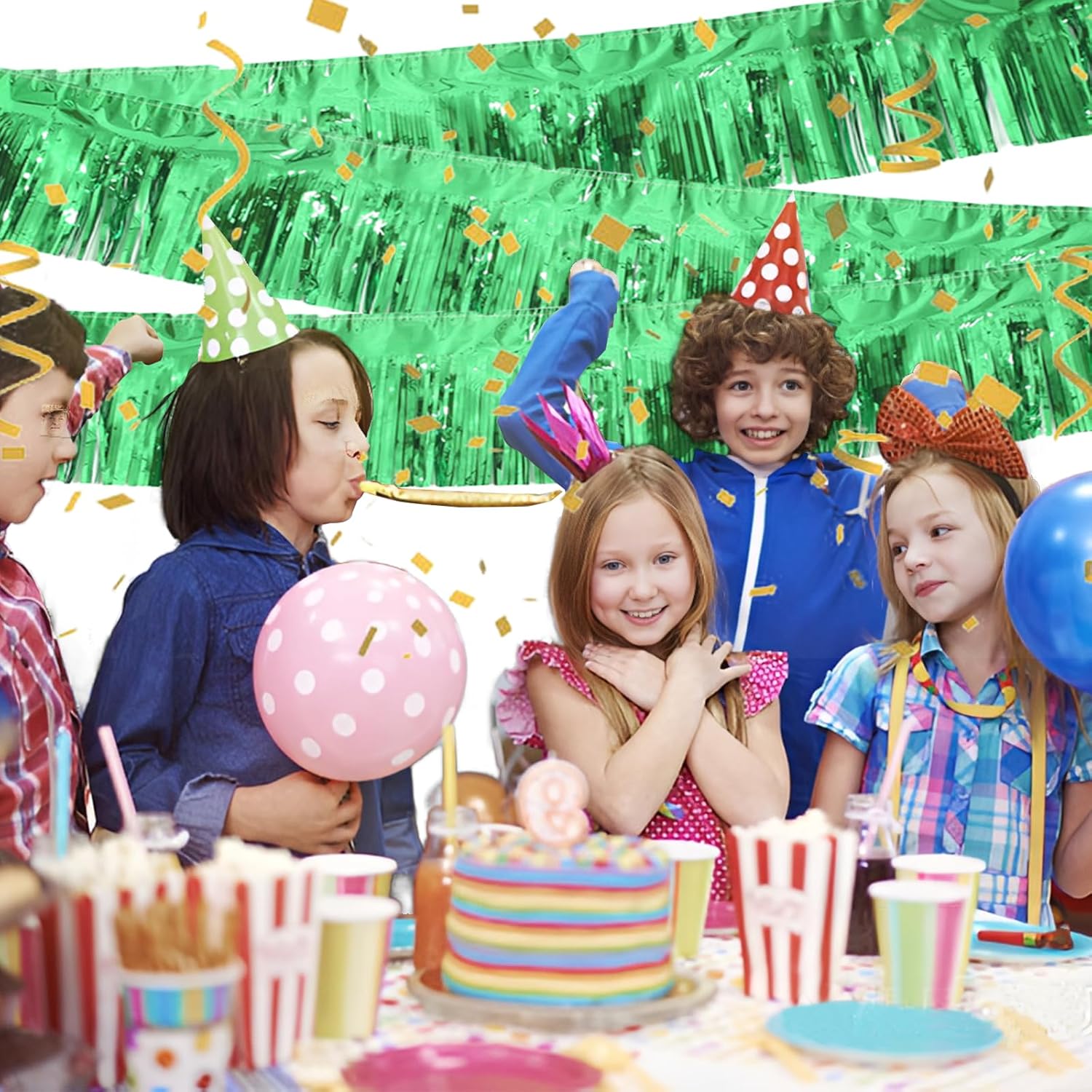 Green Foil Fringe Garland 10FT 2packs, Metallic Foil Tinsel Fringe Banners for Parade Float Decorations Wedding, Birthday Party Graduation (Two Green)