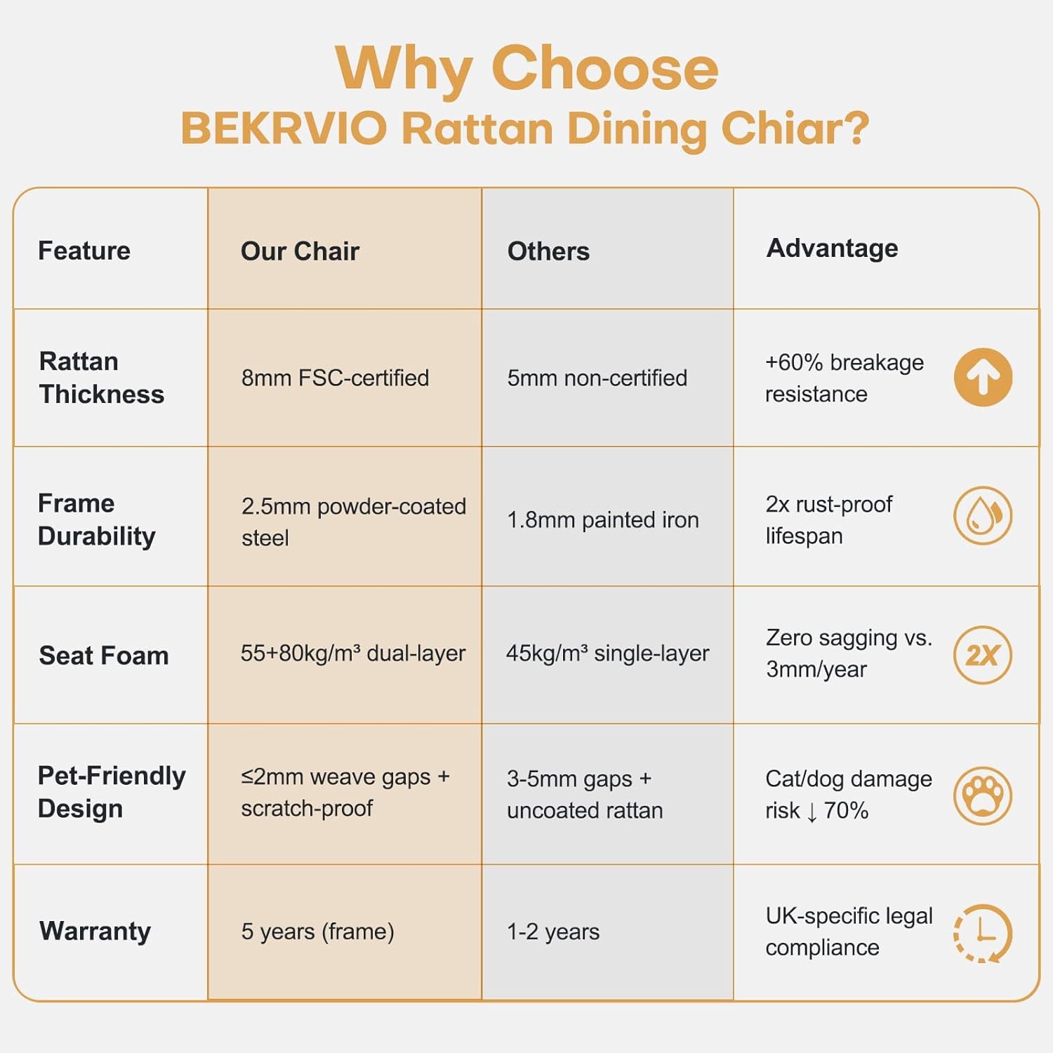 - 【Ergonomic Curved Backrest and Sturdy Frame】: The handcrafted hexagonal mesh fabric adds an elegant touch and showcases fine workmanship, while the woven rattan backrest provides comfort and breathability. With a full backrest design, the rattan chair provides ergonomic body support. A reinforced iron frame ensures strong load-bearing capacity and structural stability. It can support 300 pounds of weight. Each chair also has 4 adjustable feet, which make leveling uneven surfaces easy.