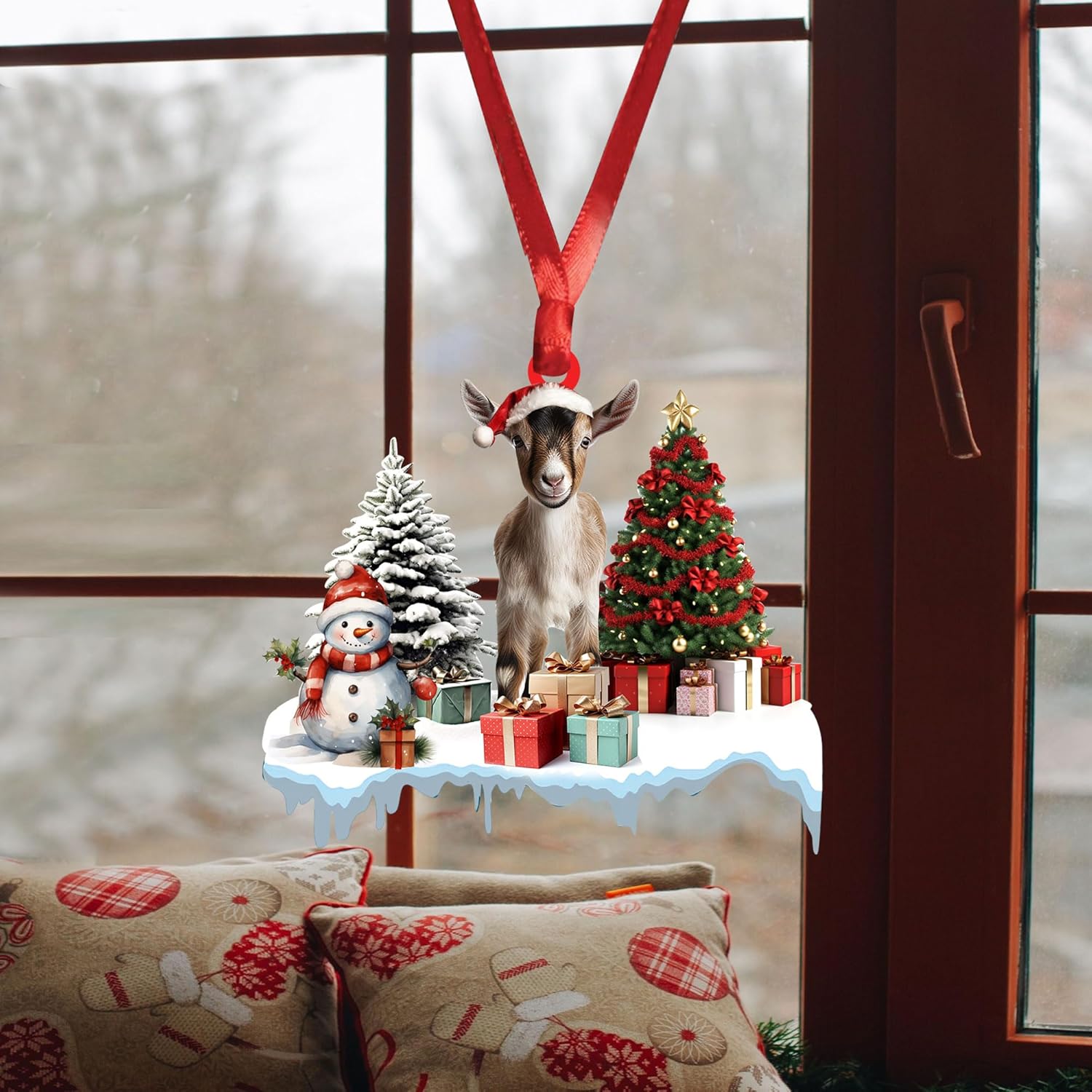 Talataca Goat 2D Flat Christmas Ornament, Goat Gift Boxes Pine Tree Decor, Hanging House Charm Eve Keepsake, Car Rear View Mirror Accessories, Xmas Gift