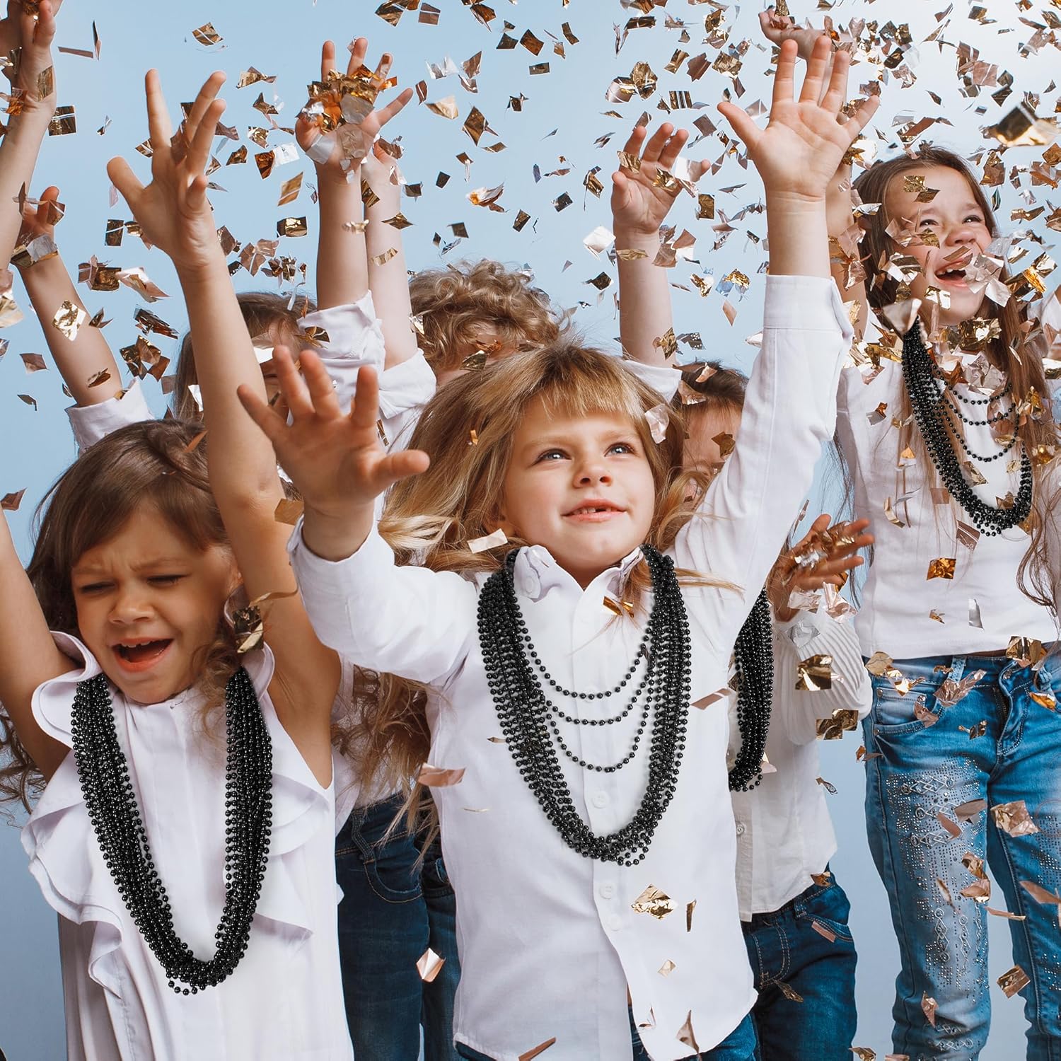 50PCS Bead Necklace, Black Mardi Gras Bead Necklace Party Favors, 33" Metallic Halloween Round Beaded Bulk, Festival Parade Throw Accessories for Mardi Gras Carnival Halloween Party Supplies Decor