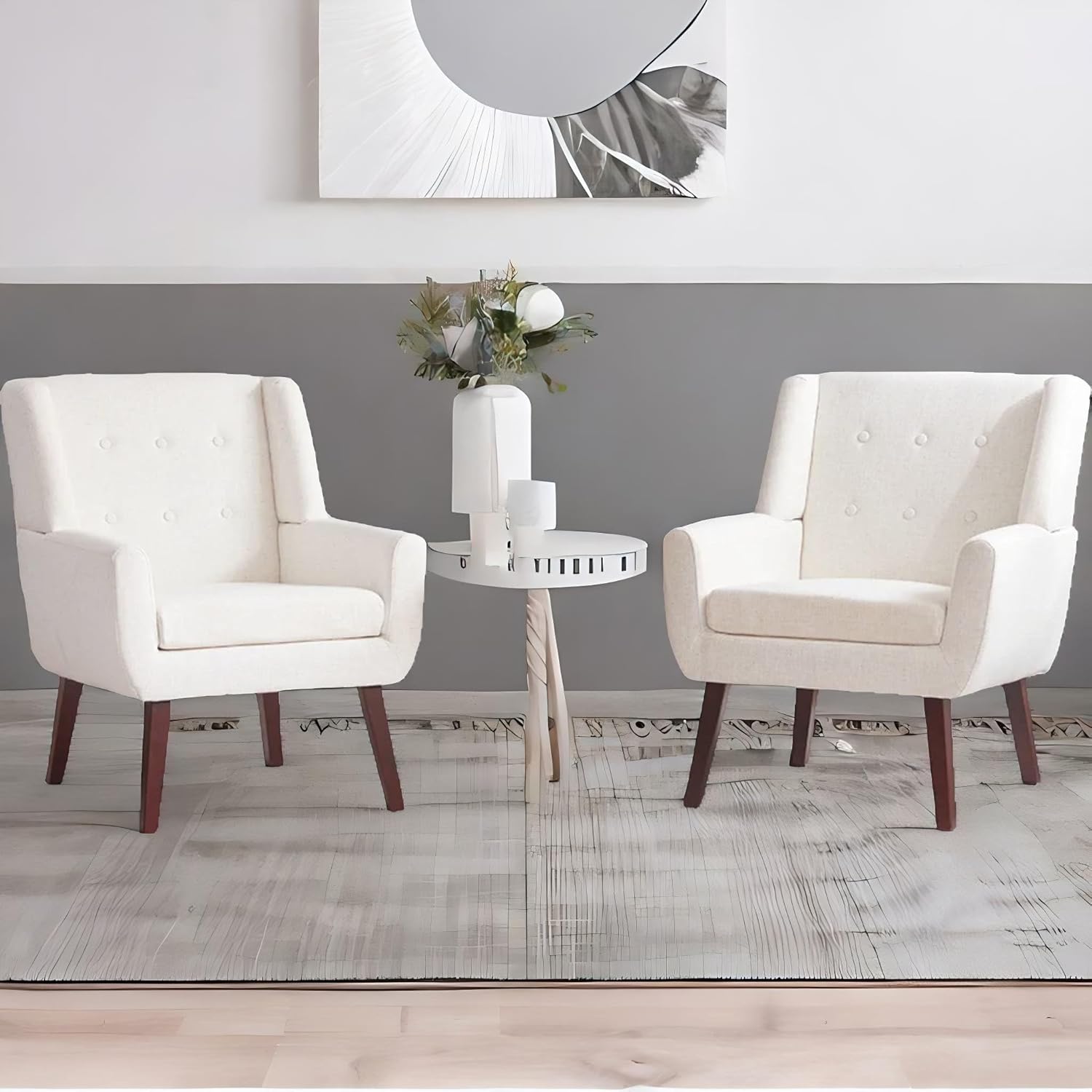 HUIMO Button-Tufted Accent Chairs Set of 2,Upholstered Reading Living Room Chair,Mid Century Modern Chair with Linen Fabric, Club Chair,Comfy Arm Chairs for Living Room,Bedroom,Beige