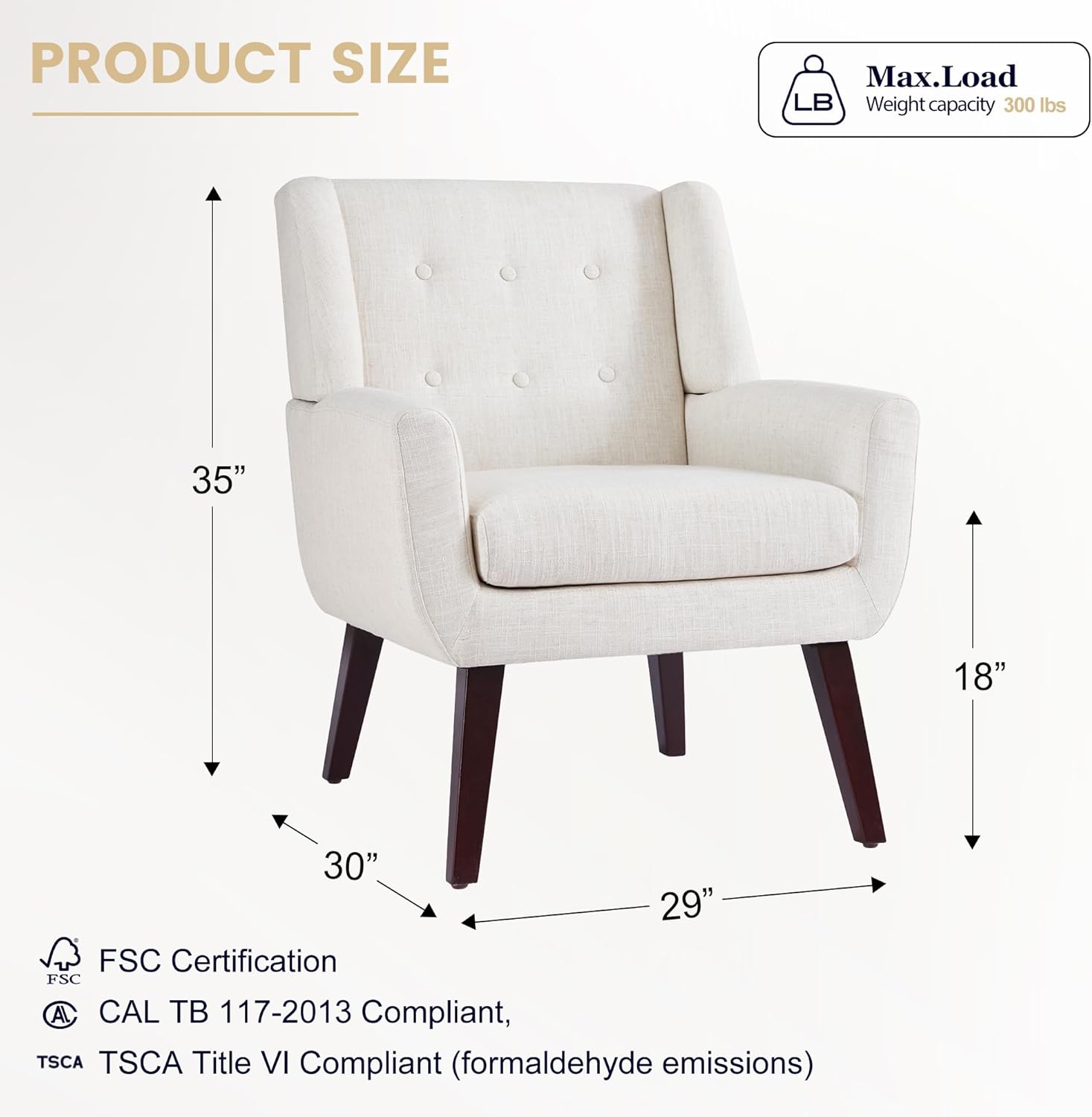 - Modern Style Design: The living room chair is designed with a simple and classic appearance to match any interior decoration style of your home. The tufted buttons of the living room chair back cushion are natural and the fabric is soft to the touch. Also available in six colors, adding a classic flair to your room is the versatile decorative chair you use