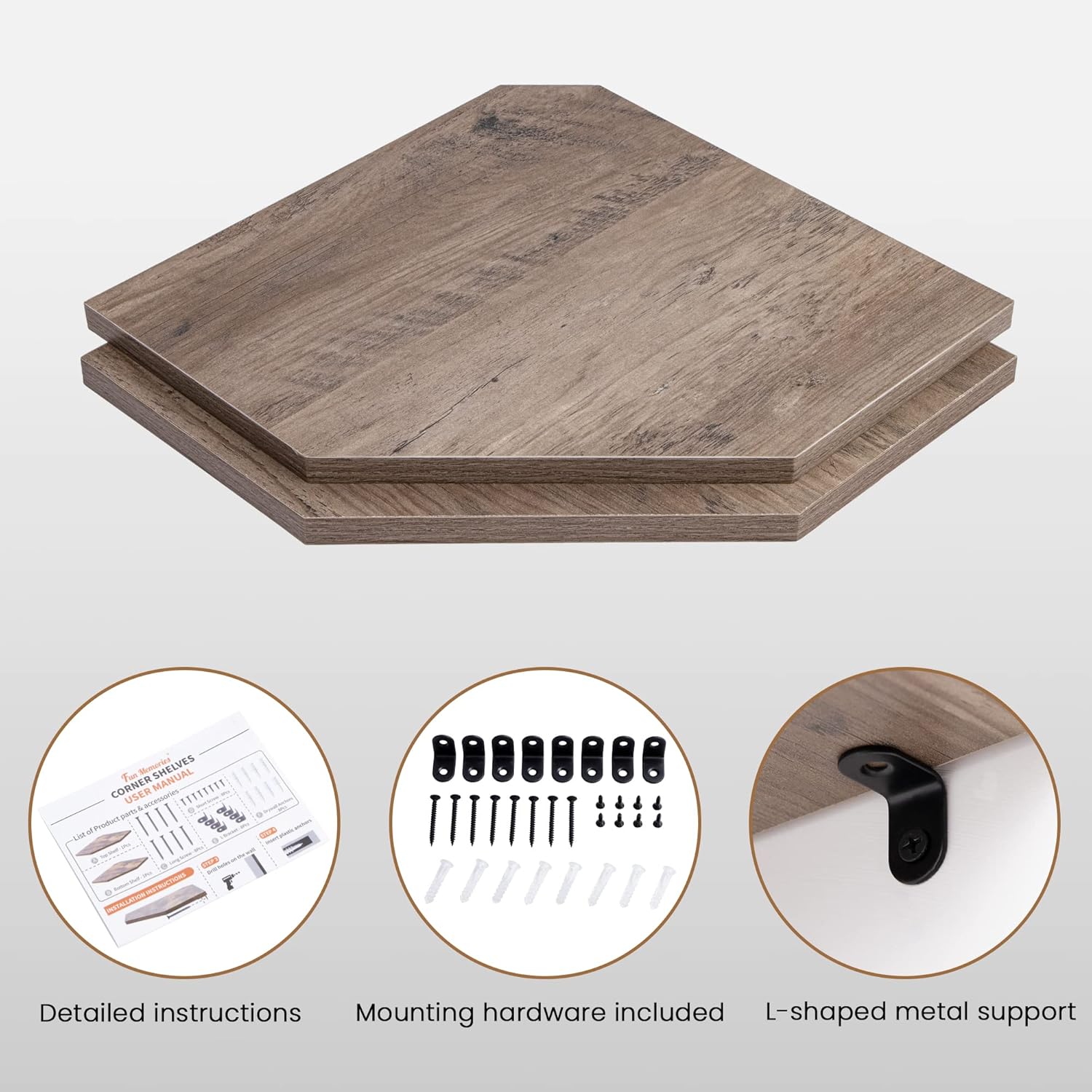 - 【Easy to Mount】The package comes with user-friendly instructions and all the necessary mounting hardware. Just place the corner wall shelf level in your desired location and secure it in place using the hidden bracket connectors provided, followed by screws