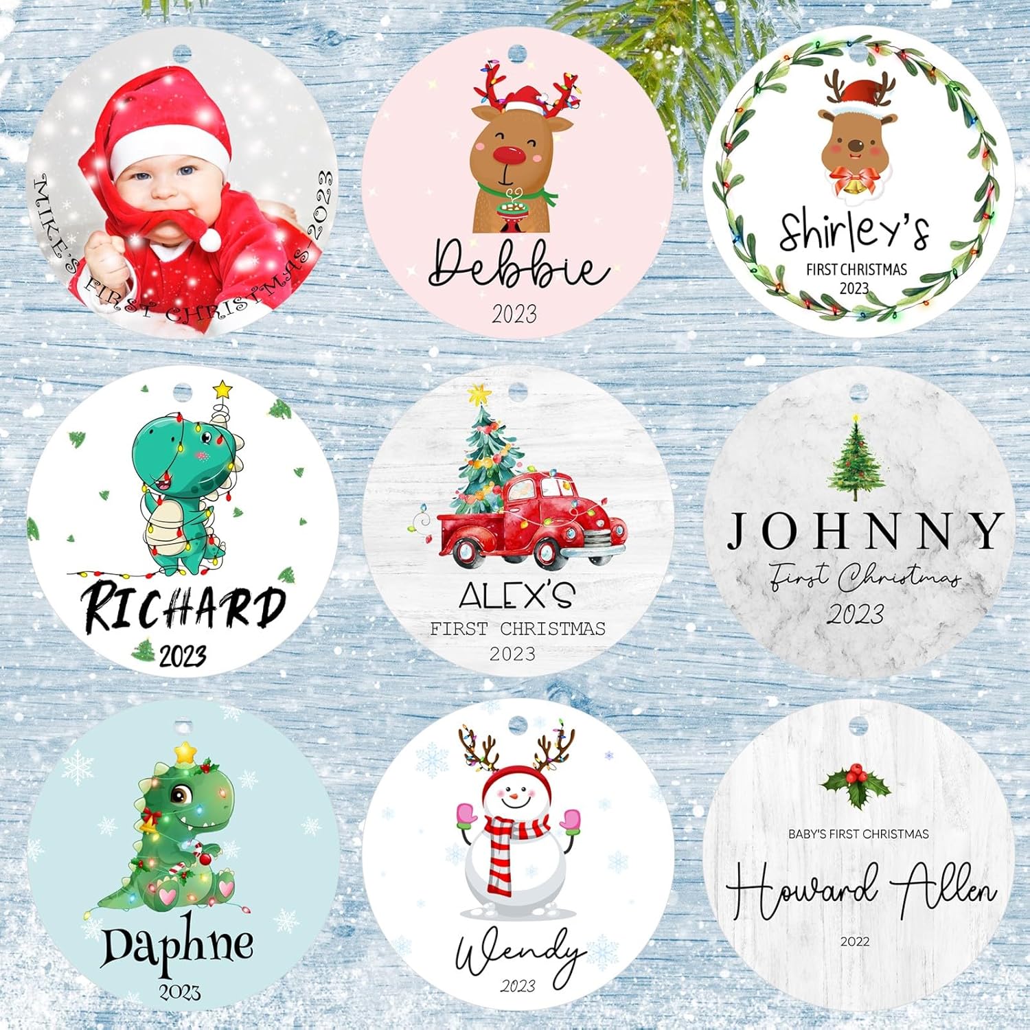 - 🎅🎅FREE CUSTOMIZATION:Customize personalized Christmas ornaments 2025 for your baby,express your best wishes to the your baby and celebrate the first joyful holidays together.Just clicking the "Customize Now" button,choose the personalized ornaments design,upload the picture and type the text,you will own a photo ornaments for Christmas tree