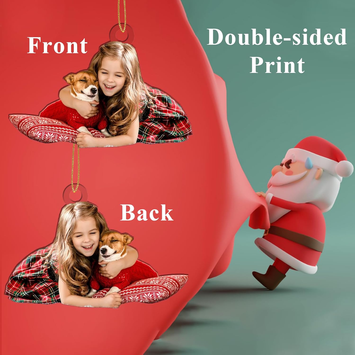 - 🎄🎄UV PRINTING:Personalized ornaments use HD printing and die-cutting technology,2d flat shape,double-sided printing.5 sizes,3.5",4.7",5.9",7" and 7.8", you can upload any picture that is memorial,we will print the picture and cut out the shape,give personalized ornaments to him or her as Christmas gift ideas