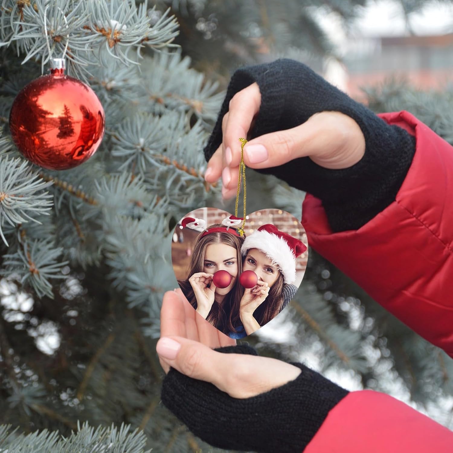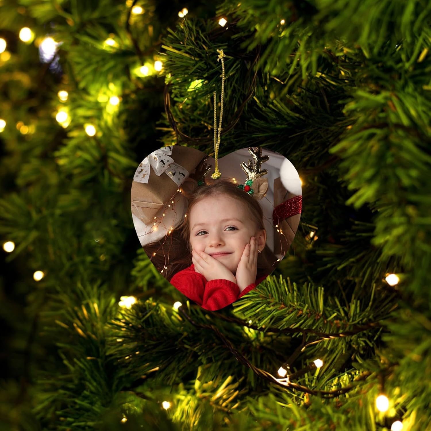Personalized Christmas Ornaments 2025 w/Picture,Double-Sided Ceramics Custom Christmas Ornament - Upload Any Photo,Optional Text - Picture Ornaments,Customized Xmas Ornament,Heart