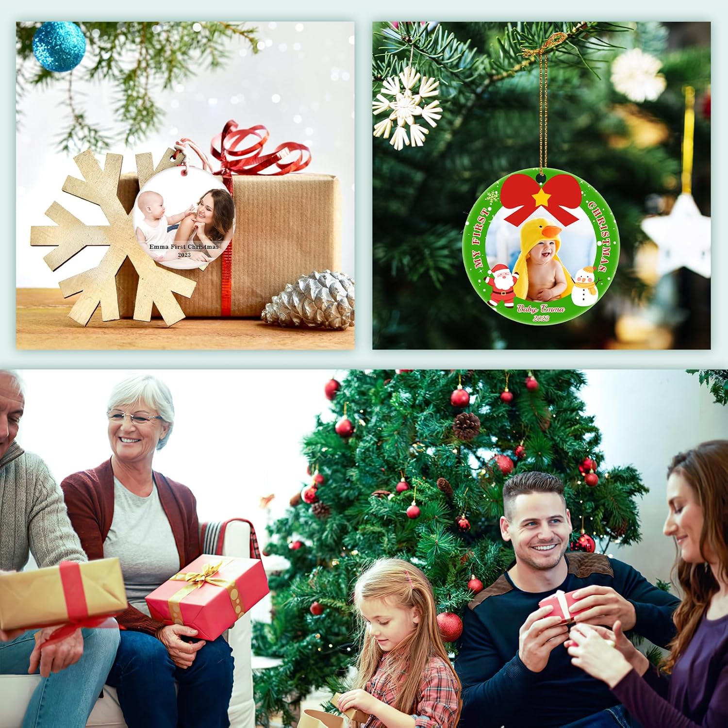 - 【Personalized Christmas Ornaments】This personalized Christmas ornament is completely customized to your needs! It can celebrate the first Christmas for babies, and cheer the Christmas for married, engaged, pets, first Christmas in new home. You can customize several ornaments to commemorate important moments. Imagine how surprised they will be when they receive the personalized Christmas Gifts