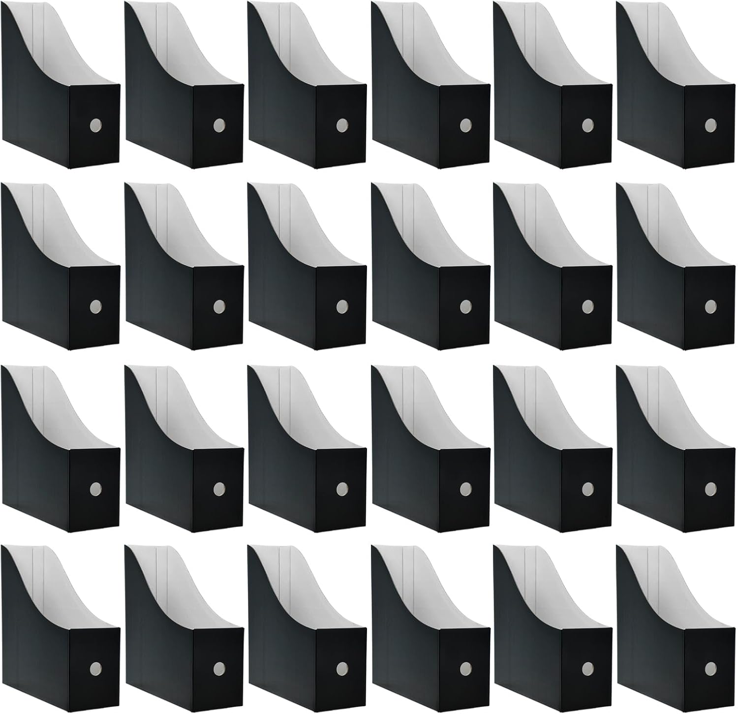 24 Pack Black Cardboard Magazine Holder, Sturdy Book Bins for Classroom Library, 10.6'' ×10.2'' ×3.5'' Inch Vertical File Folder Box