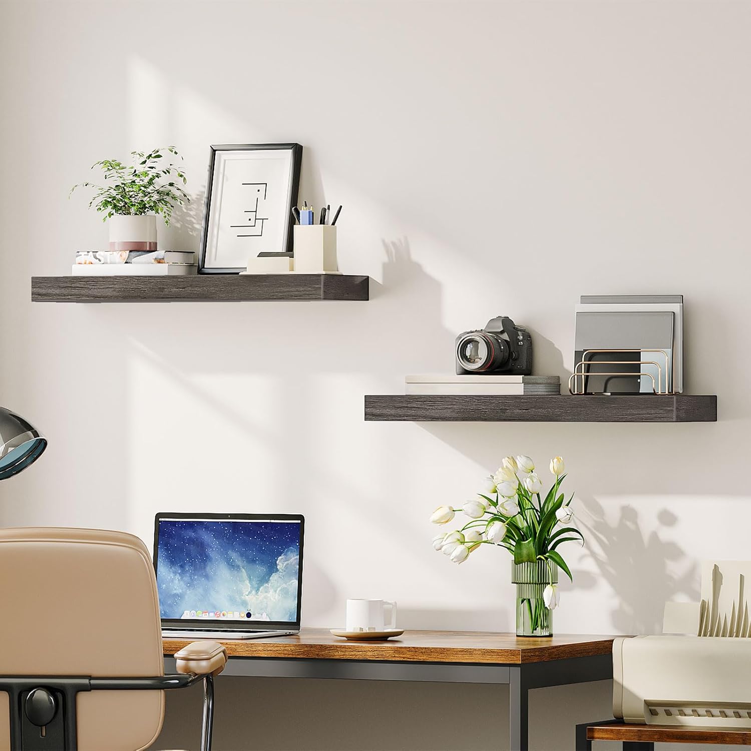 - Exquisite Wall Surface Decoration: Two elegant charcoal gray wooden shelves can be placed on each wall surface of all household rooms. This floating shelf for room wall is not only for its decoration effect, but also for this wall shelves high practicality. It is an ideal place to display your beloved photos, trophies and other delicate ecorations