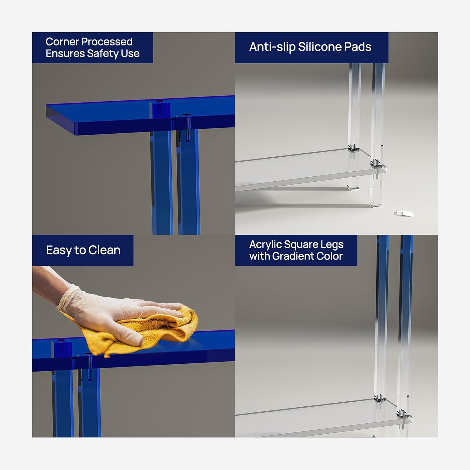 HMYHUM Narrow Acrylic Console Table, with Transparent Gradient Blue Square Legs, 7.6" Width, 2-Tier Clear Entryway Table for Hallway, Foyer, Sofa, Living Room, 39.4" L x 31.5" H