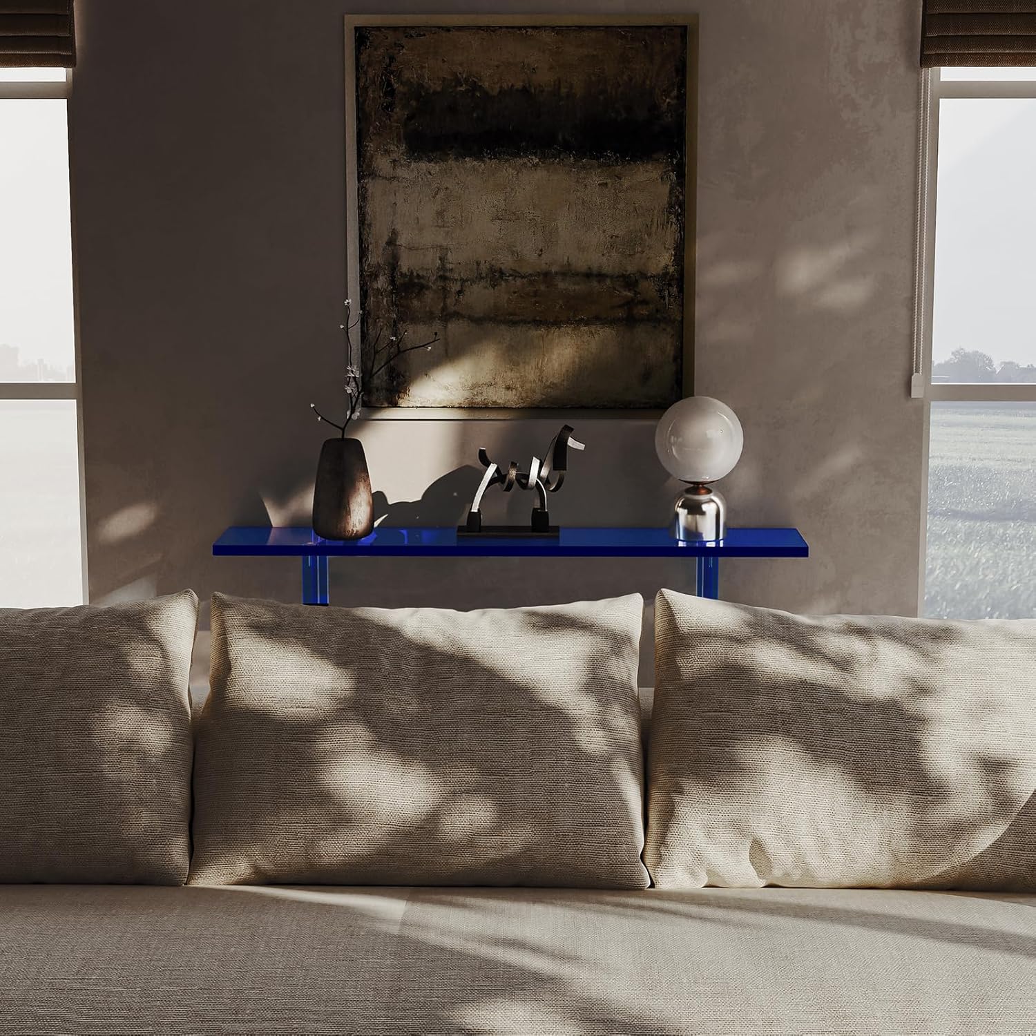 - Unique Design: Stand out with the mesmerizing appeal of the console table's transparent gradient blue square legs, adding a touch of sophistication and modern flair to your entryway.