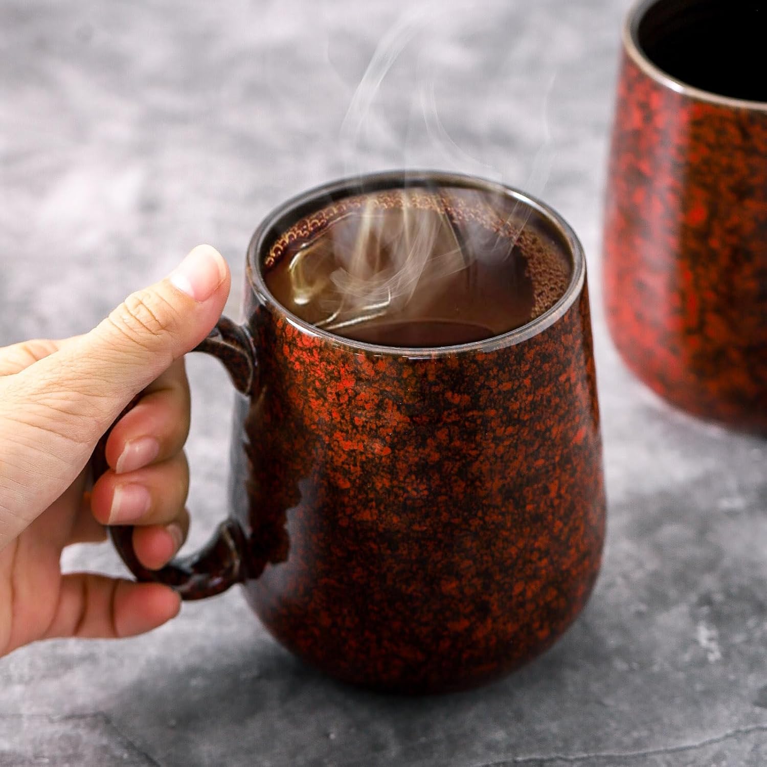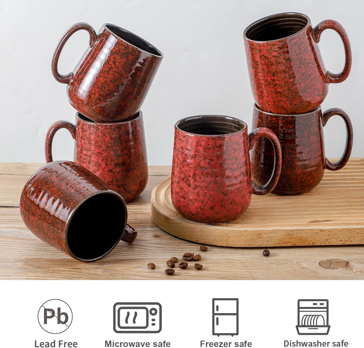 - UNIQUE RED GLAZE DESIGN: This 6-piece ceramic mug set features a distinctive red glaze that adds an artistic touch to your kitchen, making it an ideal choice for daily use at home or in the office