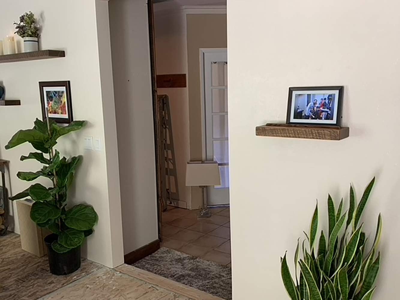 - Elevate Your Space with Rustic Charm: Transform your living room or any space with our large floating shelves for wall. These 18 inch floating shelf beauties, crafted from natural wood, add a touch of rustic warmth and provide ample display space for your cherished items. These are a great depth for photos, and organizing small areas. NOTE: You need to be able to hit one wood stud toward the center of where you want to hang the shelf.