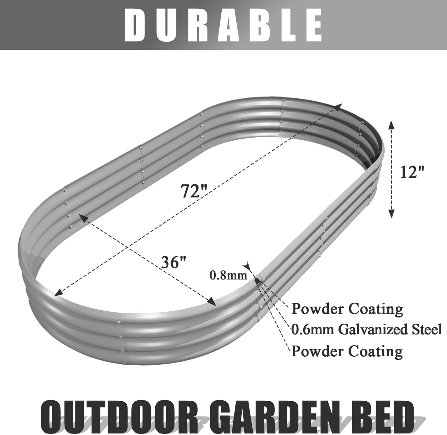 - 【Durable Material--0.8mm Thickness】Our metal planter raised bed is made of 0.8mm (22-gauge) thickened galvanized sheet. The wave structure can withstand high pressure without loosening, sturdy enough for long-lasting outdoor use. And the powder coating is not only beautiful but also rust-proof and corrosion-proof, much better protects the flower bed, thereby enhancing its durability