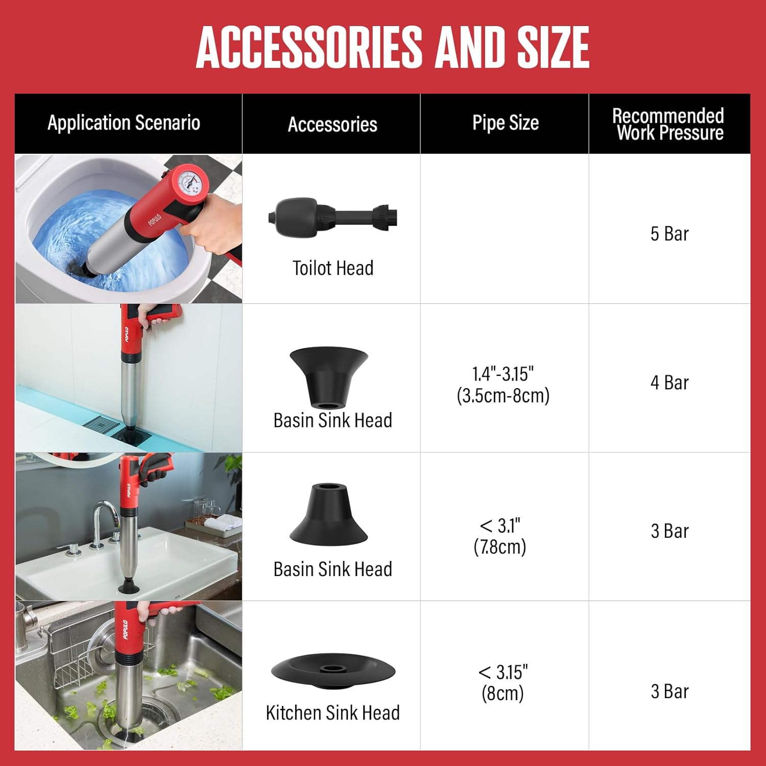 - Versatile Usage: This multi-functional air plunger is not limited to toilets alone; it can also be used for unclogging sinks, showers, kitchen drains, and pipelines. It is a versatile tool that caters to all your household drainage needs.