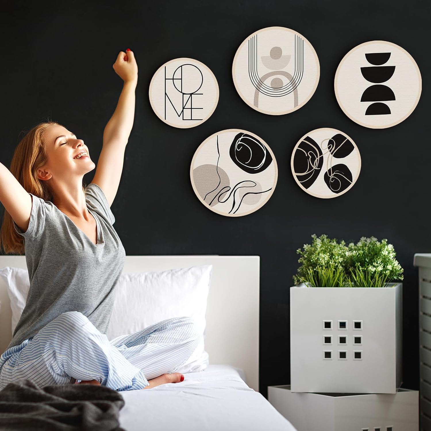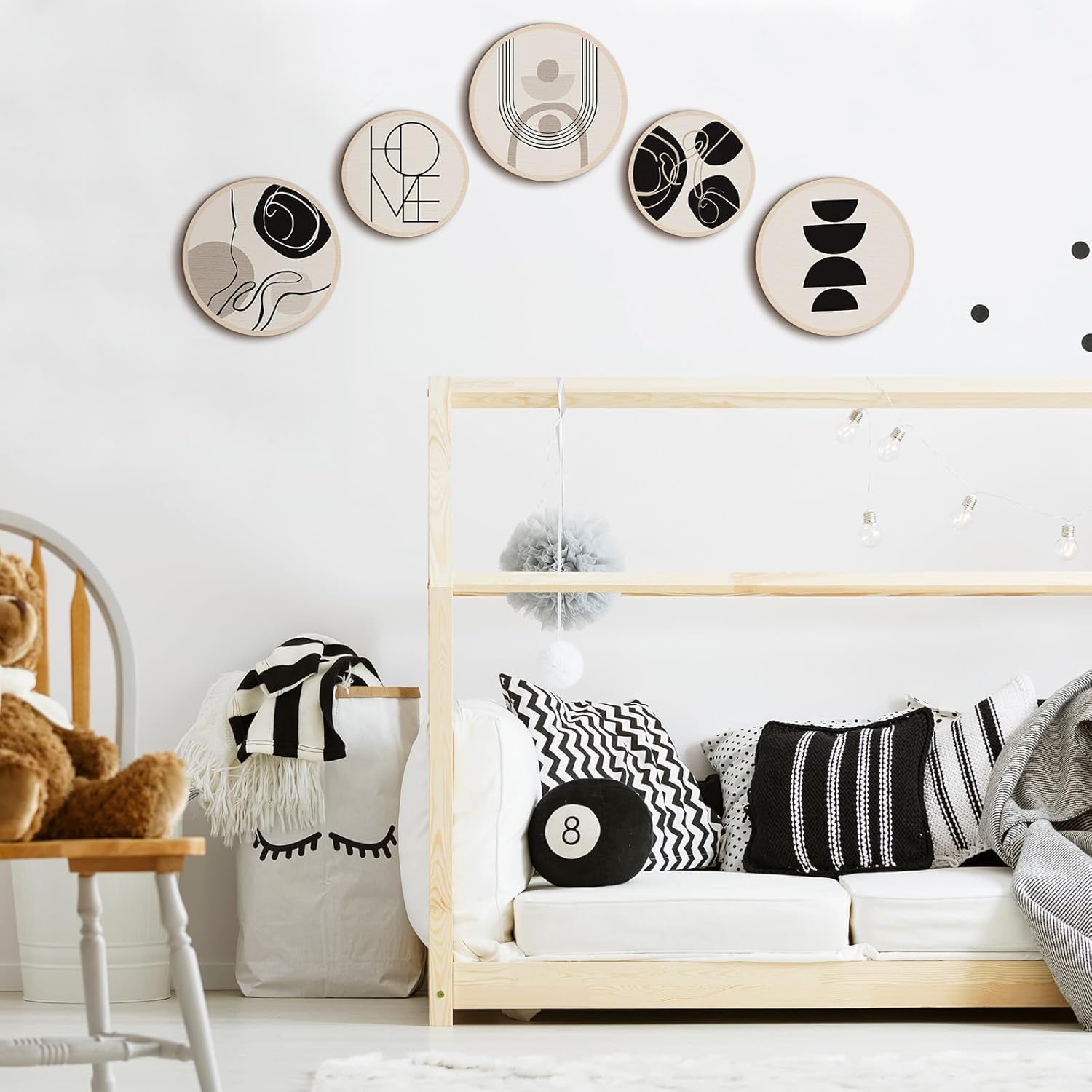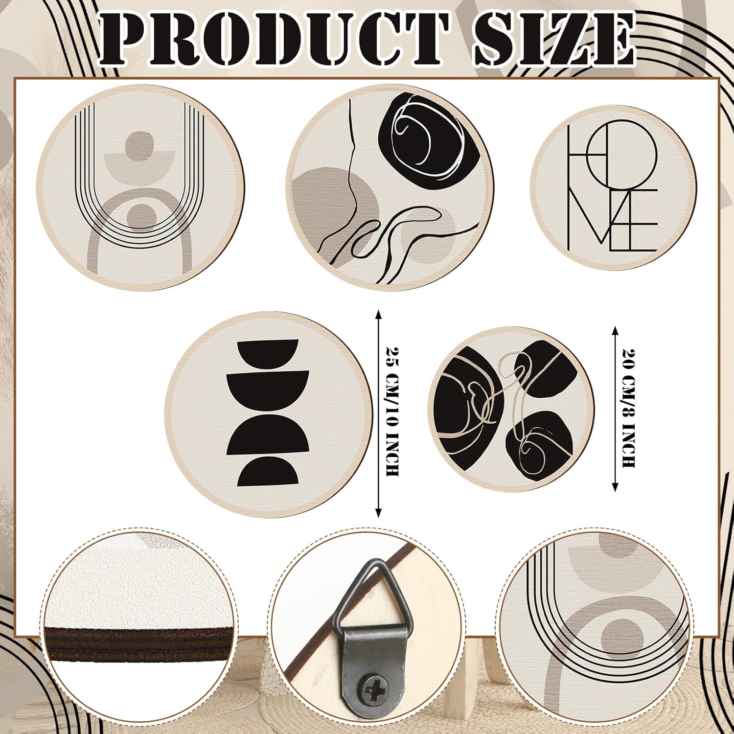 - Proper Size for Display: there are 2 kinds of sizes of the aesthetic wall art, 3 bigger ones measure about 10 inches/ 25 cm in diameter, and 2 smaller ones are about 8 inches/ 20 cm in diameter, all of them are about 0.2 inch/ 0.5 cm in thickness, proper size to catch people's attention