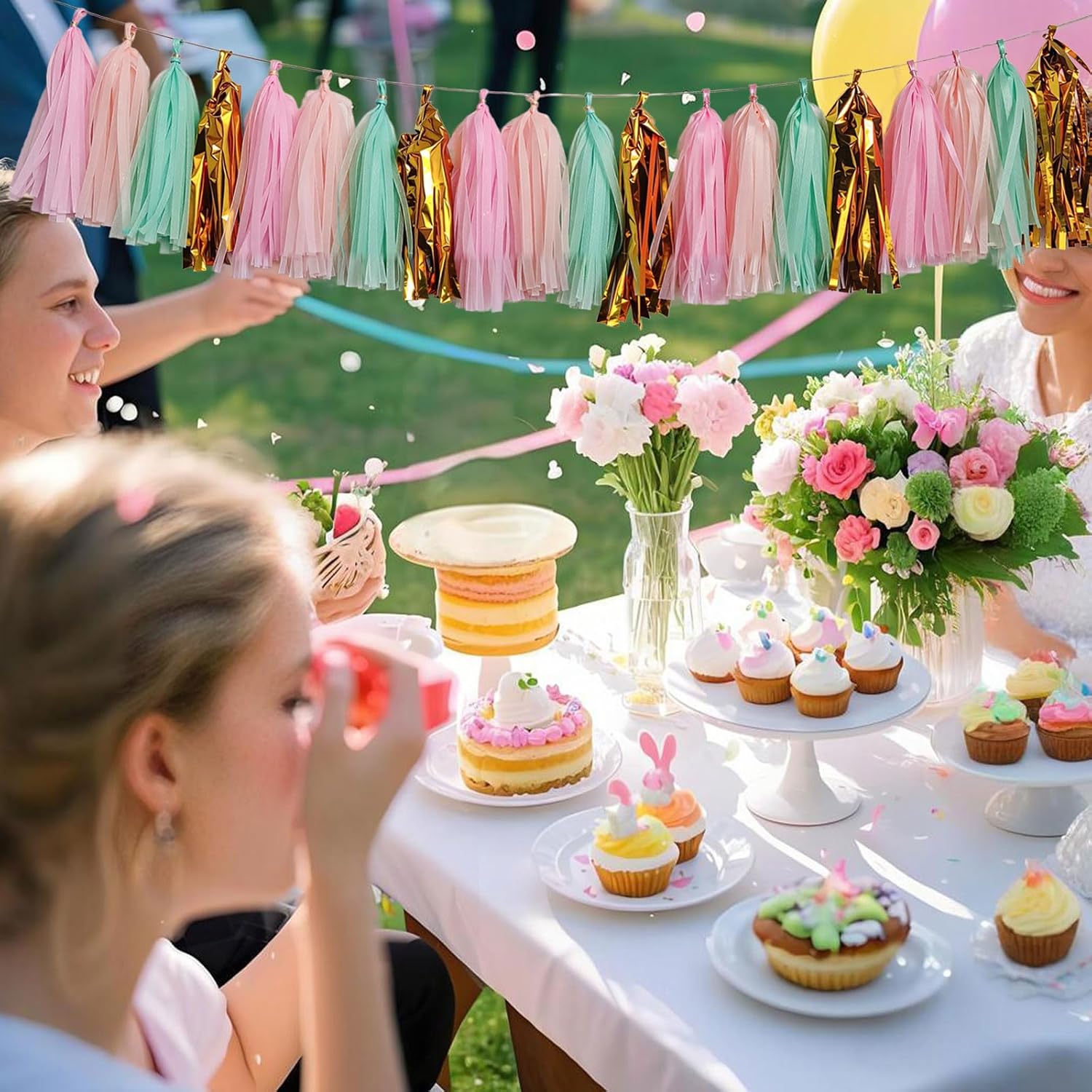 Shiny Tassel Garland Tissue Paper Tassel Banner,Tassels Party Decorations for Wedding,Birthday,Bridal/Baby Shower,Pack of 20 (Gold/Mint/Peach/Pink)